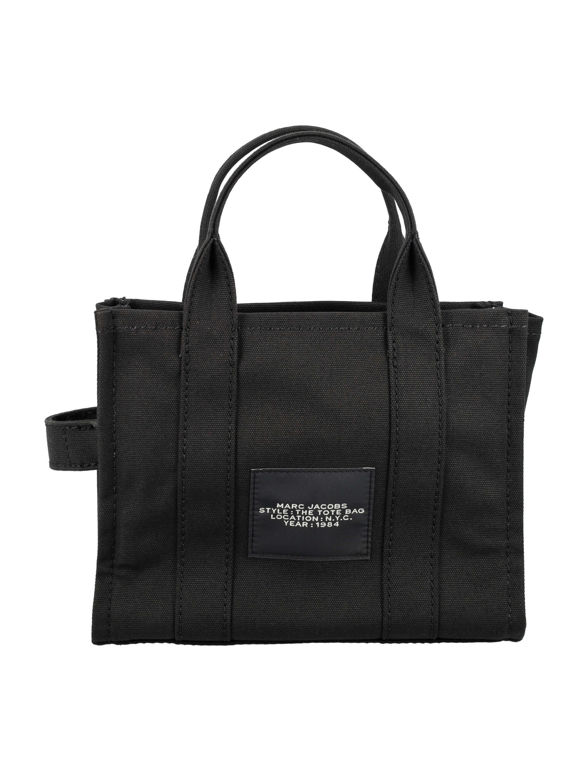 Elevate your style with the chic and versatile The Small tote bag from MARC JACOBS KIDS. Made from 100% cotton canvas, this black handbag features top handles, a zip closure, and a removable webbing strap. With its iconic logo print and patch, this bag is a must-have accessory for any fashion-forward woman. Get yours now and make a statement wherever you go!