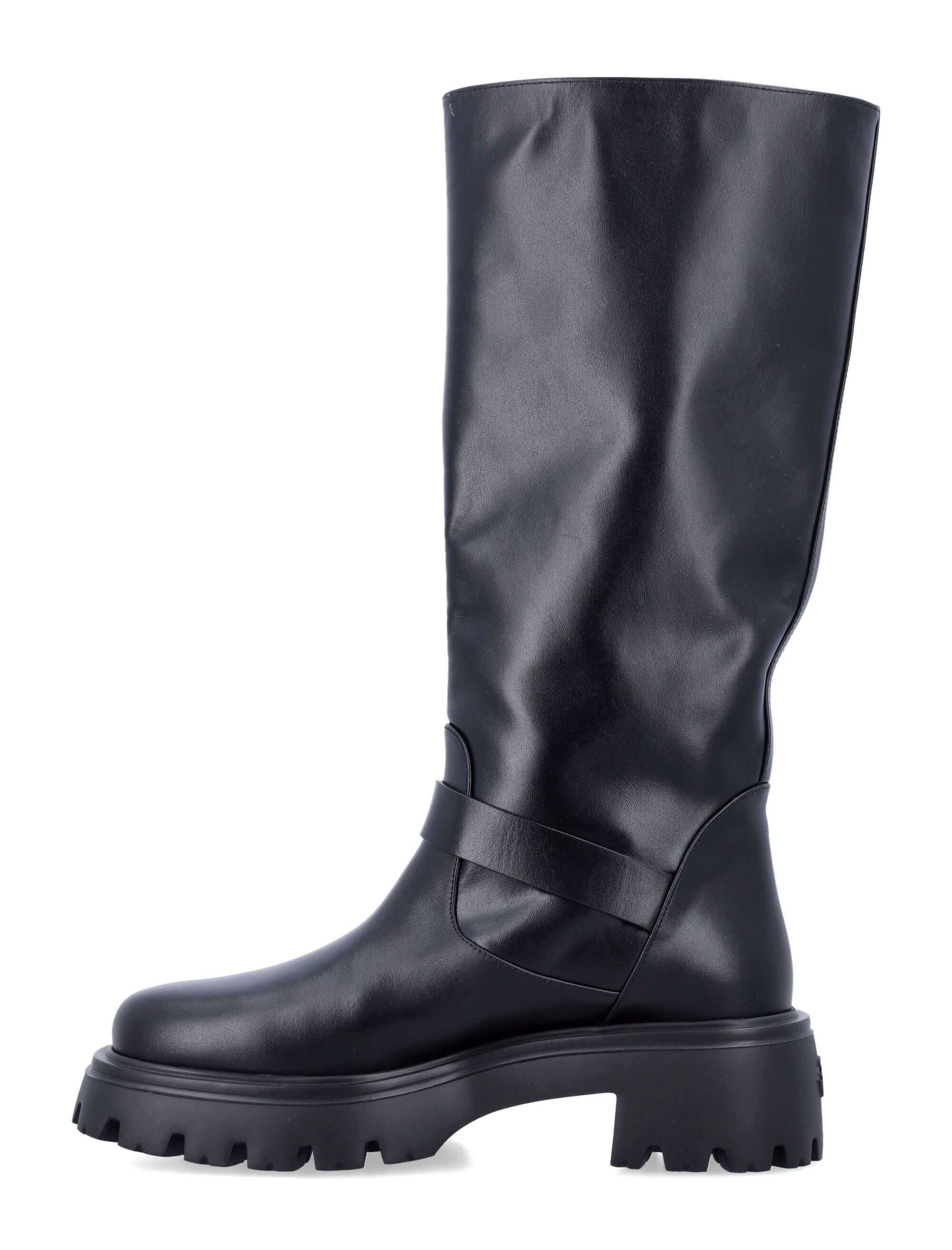 Step into elegance with the Emerson Moto Boot by Stuart Weitzman. Crafted with premium calf leather and featuring a chic square toe, knee-high design, and stylish buckle details, this boot effortlessly combines comfort and sophistication.