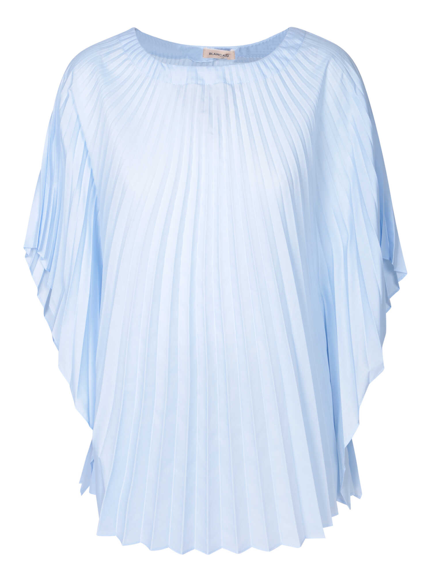 Elevate your style with this stunning Blanca Vita Blue Top. Featuring a sky blue lightweight tunic with a pleated design and asymmetric cut, this top is perfect for special occasions or a chic everyday look. Crafted with care and attention to detail, this top exudes modern sophistication and elegance. Make a statement with Blanca Vita.