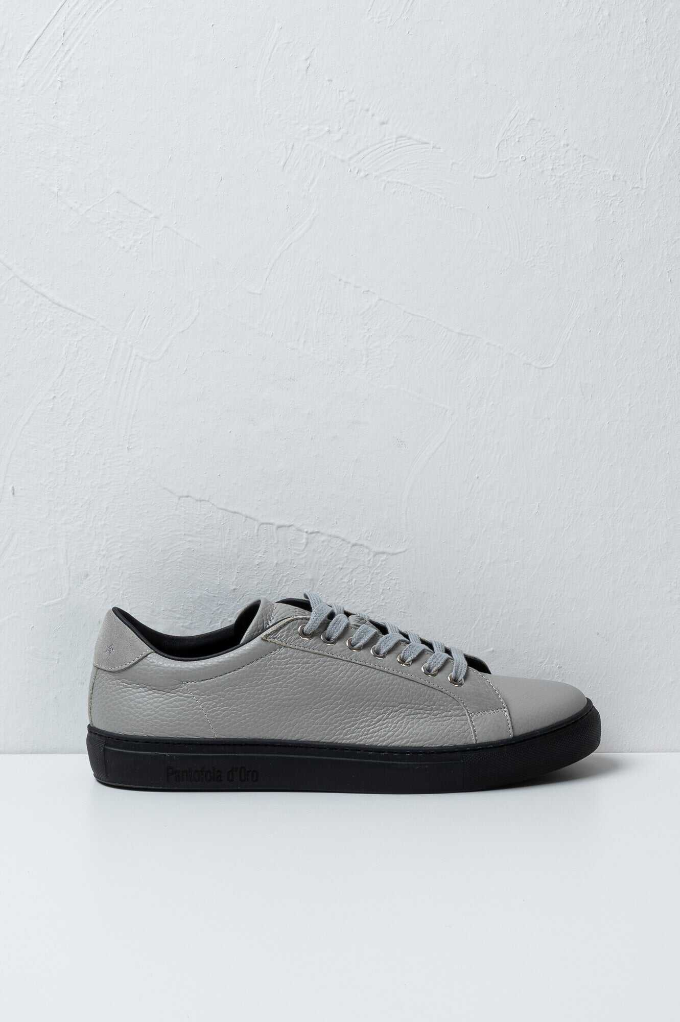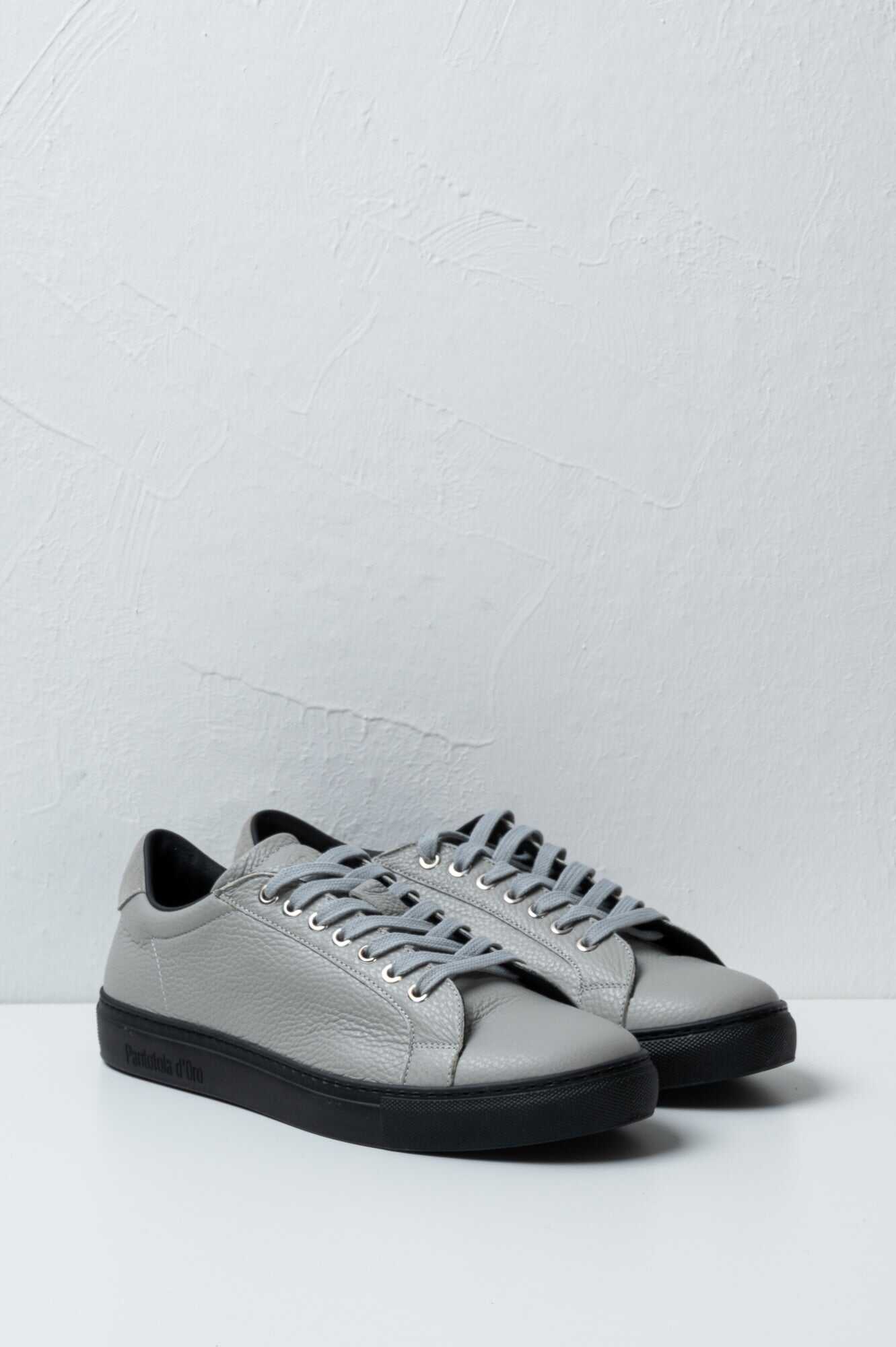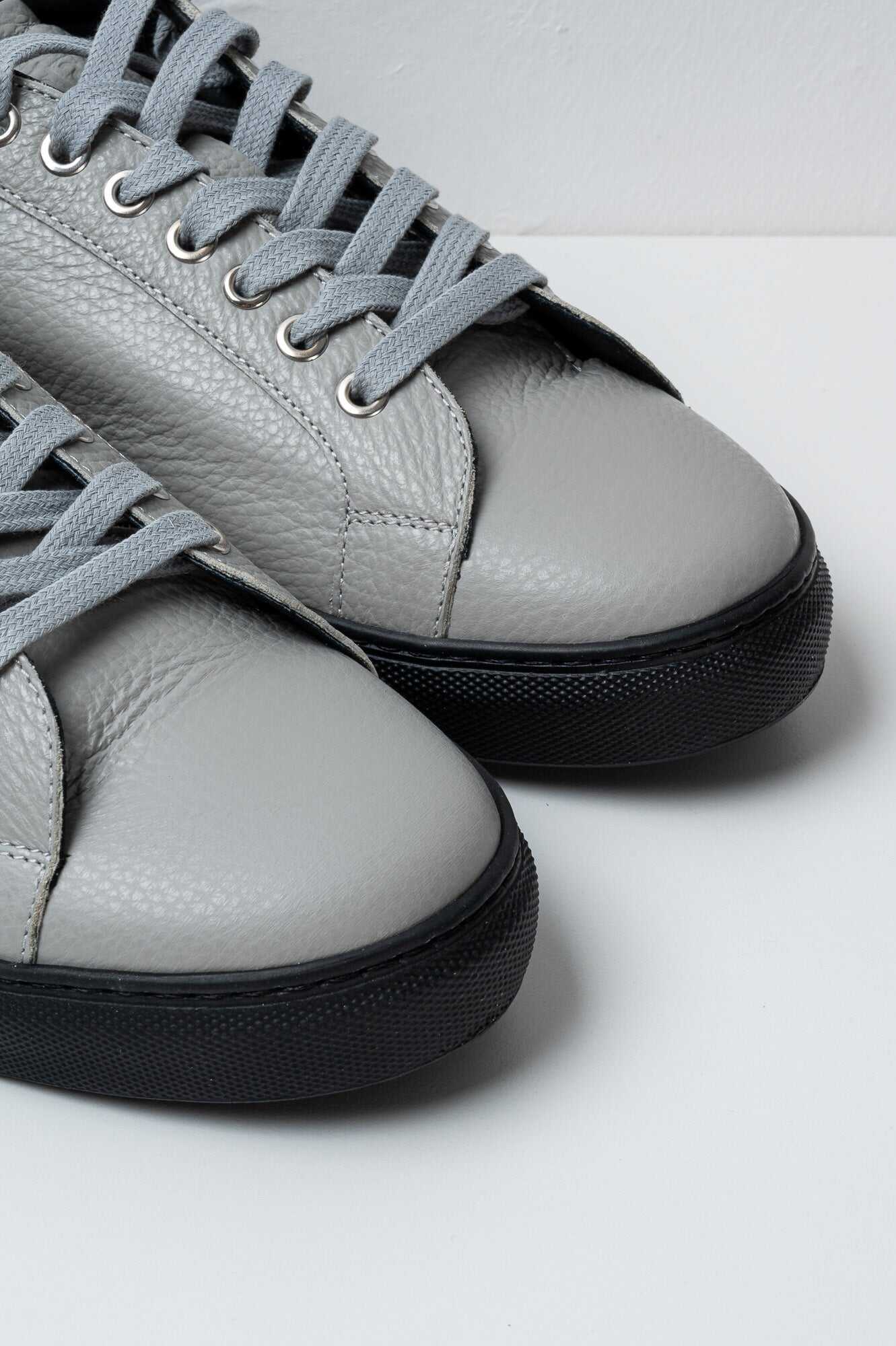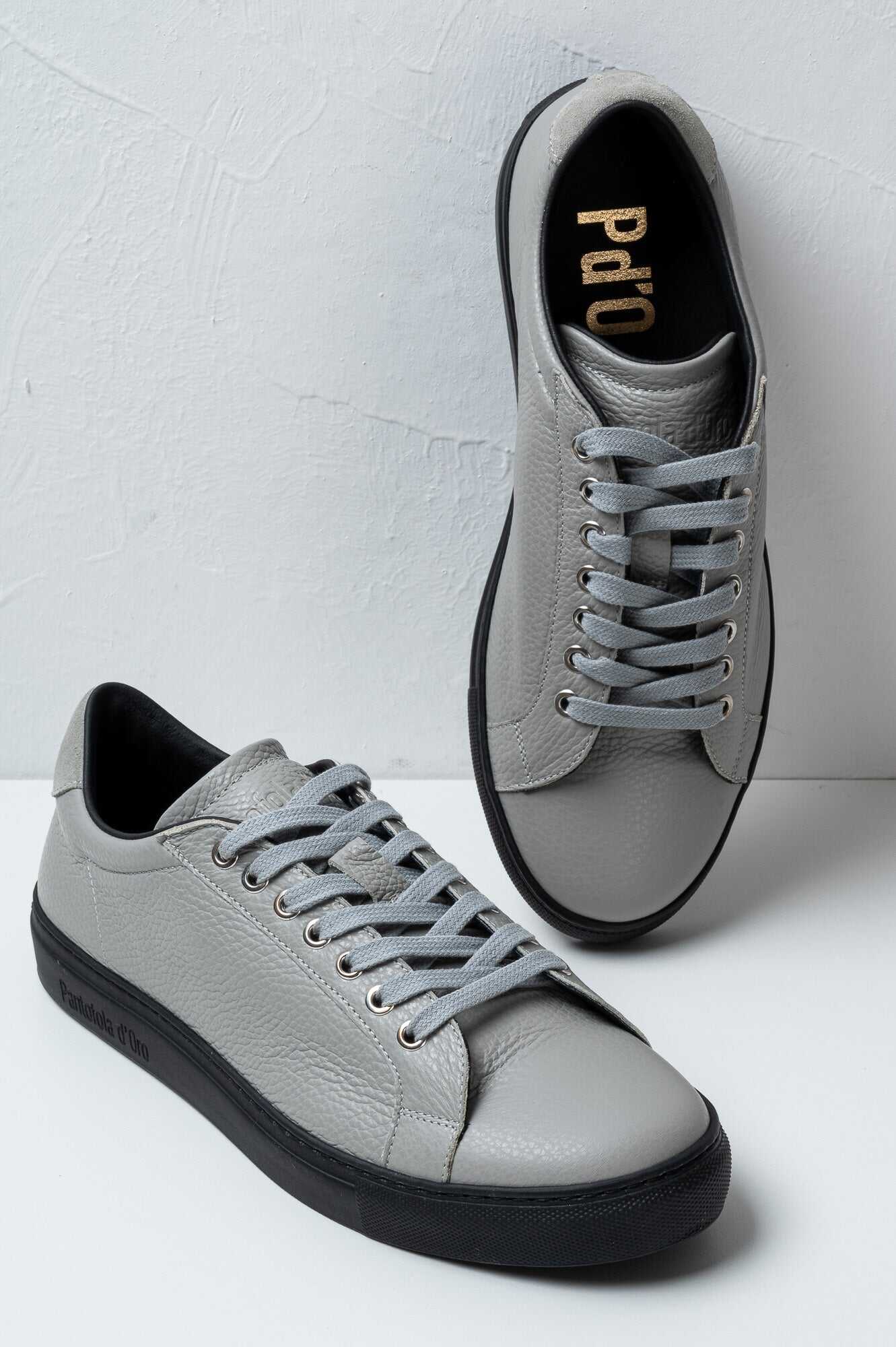 Make a statement in these classic retro tennis Top Spin Leather Sneakers. Crafted with premium Italian calf leather on a flexible and durable rubber outsole, these luxury sneakers feature upgraded handstitched details, cushioning in the midsole, and metal eyelets on double layered leather for daily wear. The gold logo detailing and flat laces add a touch of luxury while the cushioned footbed ensures all-day comfort. Made in Italy, these grey leather sneakers with suede toepiece and textured outsole are perfect for any occasion. Available in Men's size 46.