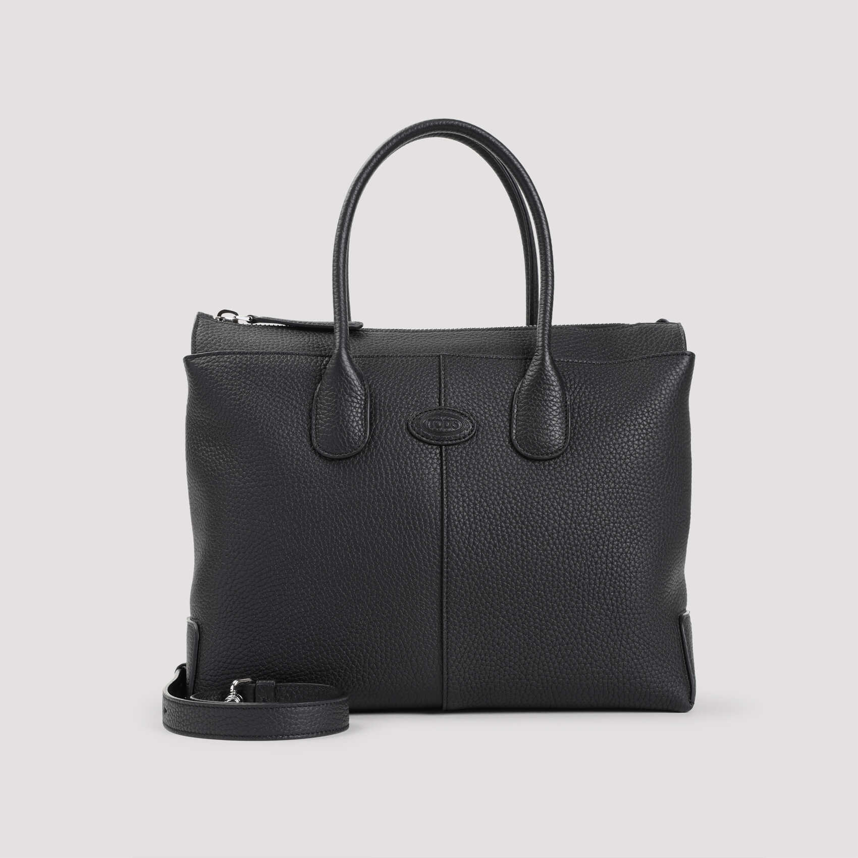 Elevate your style with the luxurious TOD'S Black Shopper Bag. Crafted from 100% grained leather, it offers a spacious design with dimensions of 35cm in width, 27cm in height, and 13cm in depth, making it perfect for any occasion.