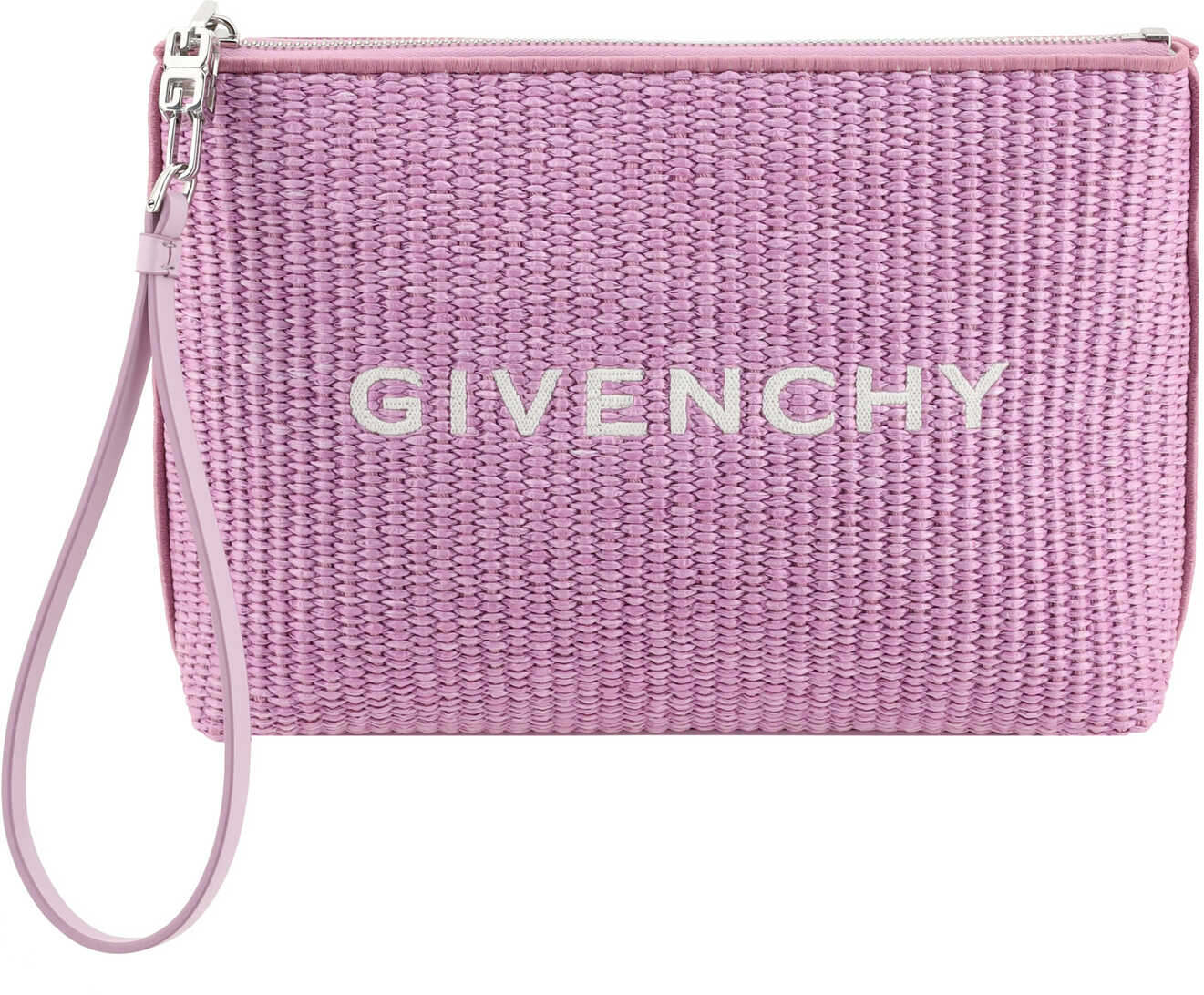 Raffia Clutch Bag by Givenchy, zipper closure at top, iconic contrasting monogram on front.