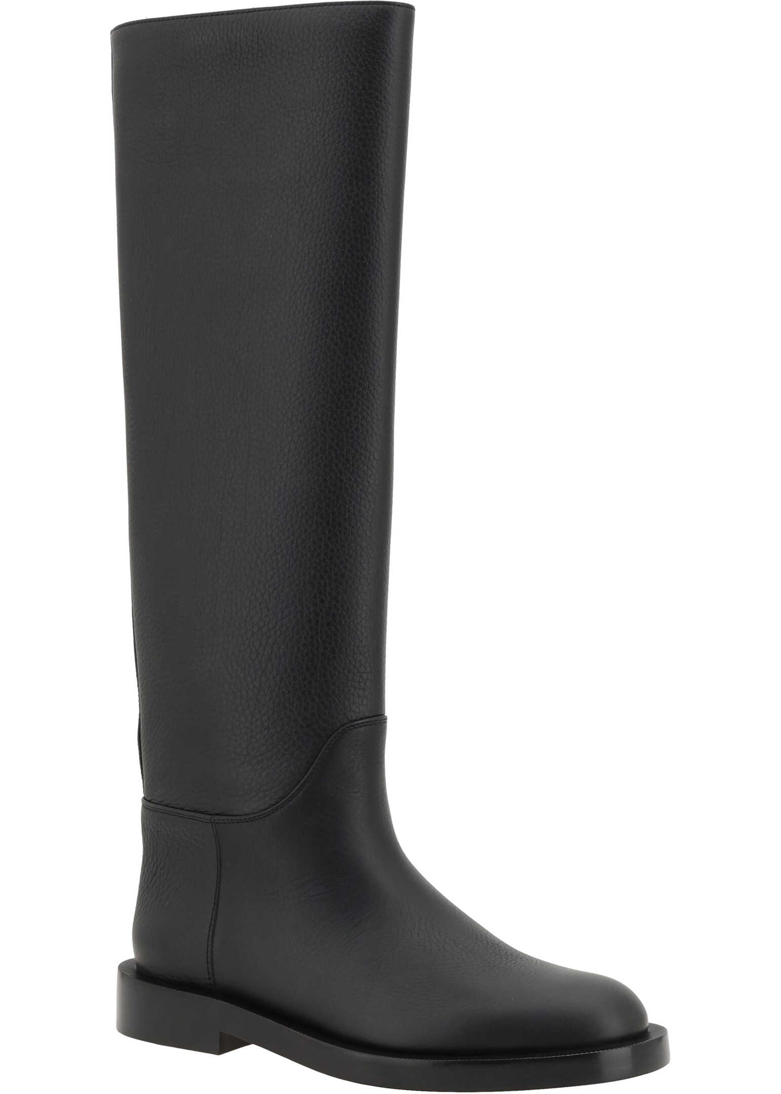 Hammered Leather Boots by Khaite are a slip-on style that combines comfort and style. Featuring a round toe and leather block heel, they offer a sophisticated look and a practical fit without the need for fasteners.