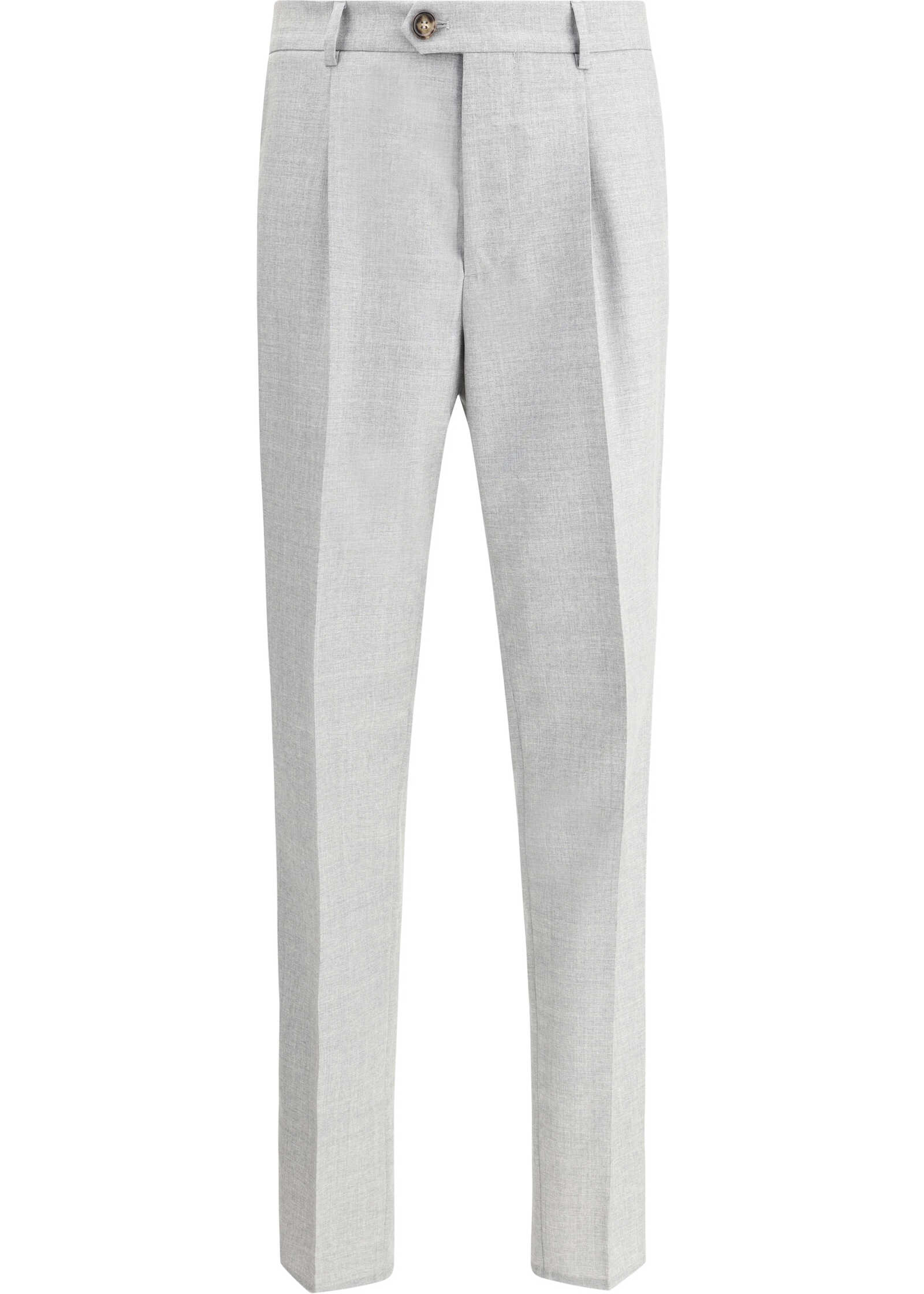 Virgin Wool Pants by Brunello Cucinelli featuring front button and zipper closure, two side slash pockets, two welt pockets at back, waistband loops, mélange pattern, regular fit.
