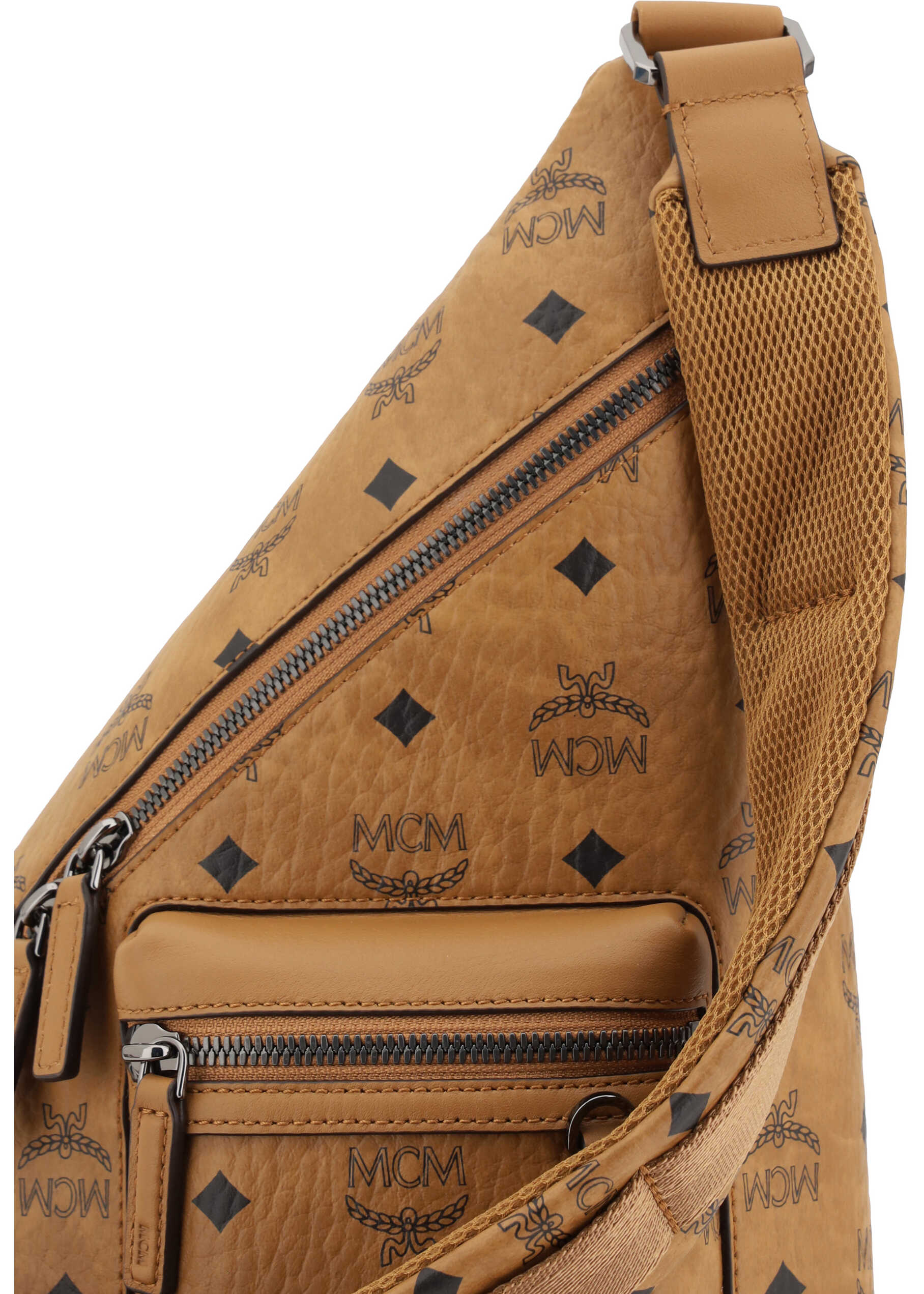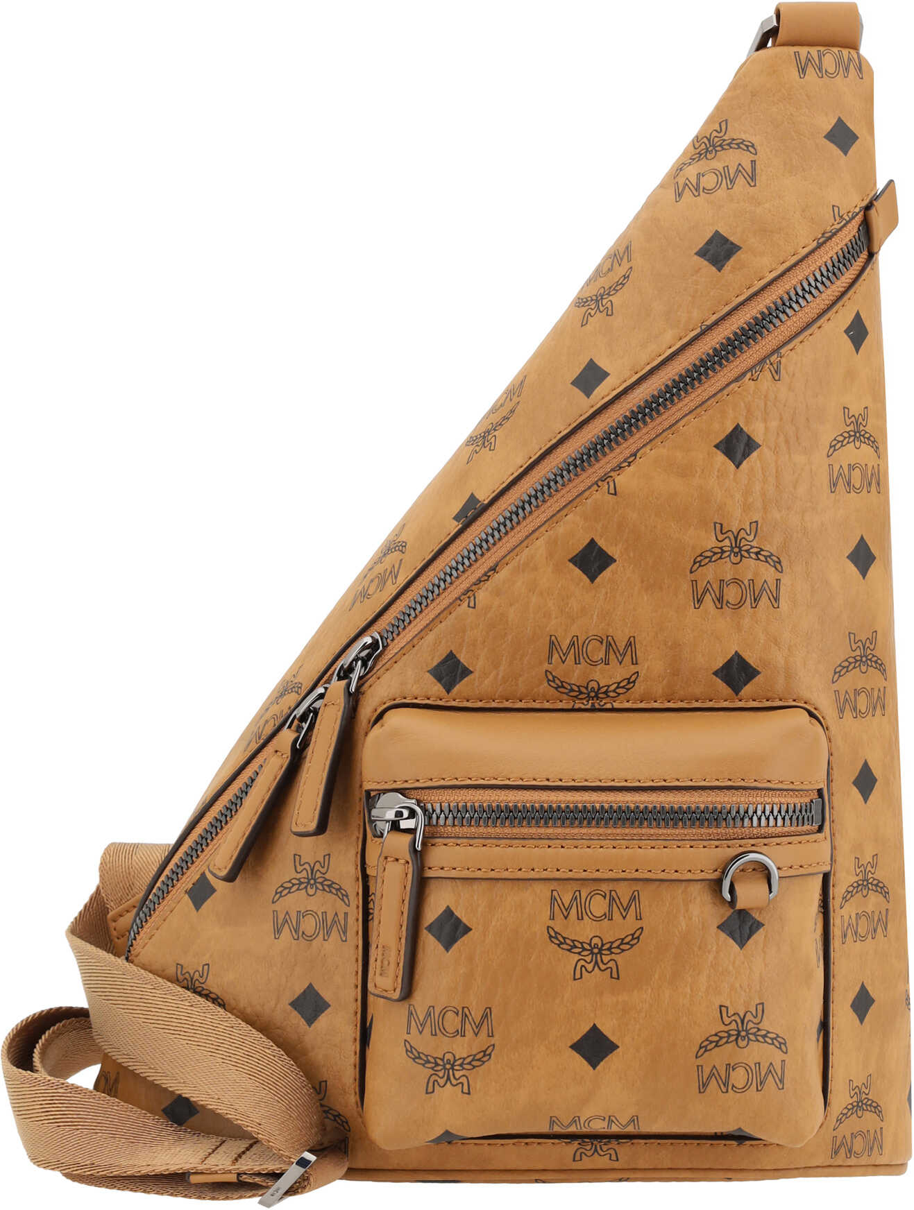 Leather One-Shoulder Backpack by MCM features a geometric design. The double-slider zipper that runs the length of the bag is functional and modern, allowing quick and secure access to items inside. The padded, adjustable shoulder strap adds comfort and practicality. The zippered pocket located on the front is an additional distinguishing feature along with the iconic MCM monogram repeated throughout.