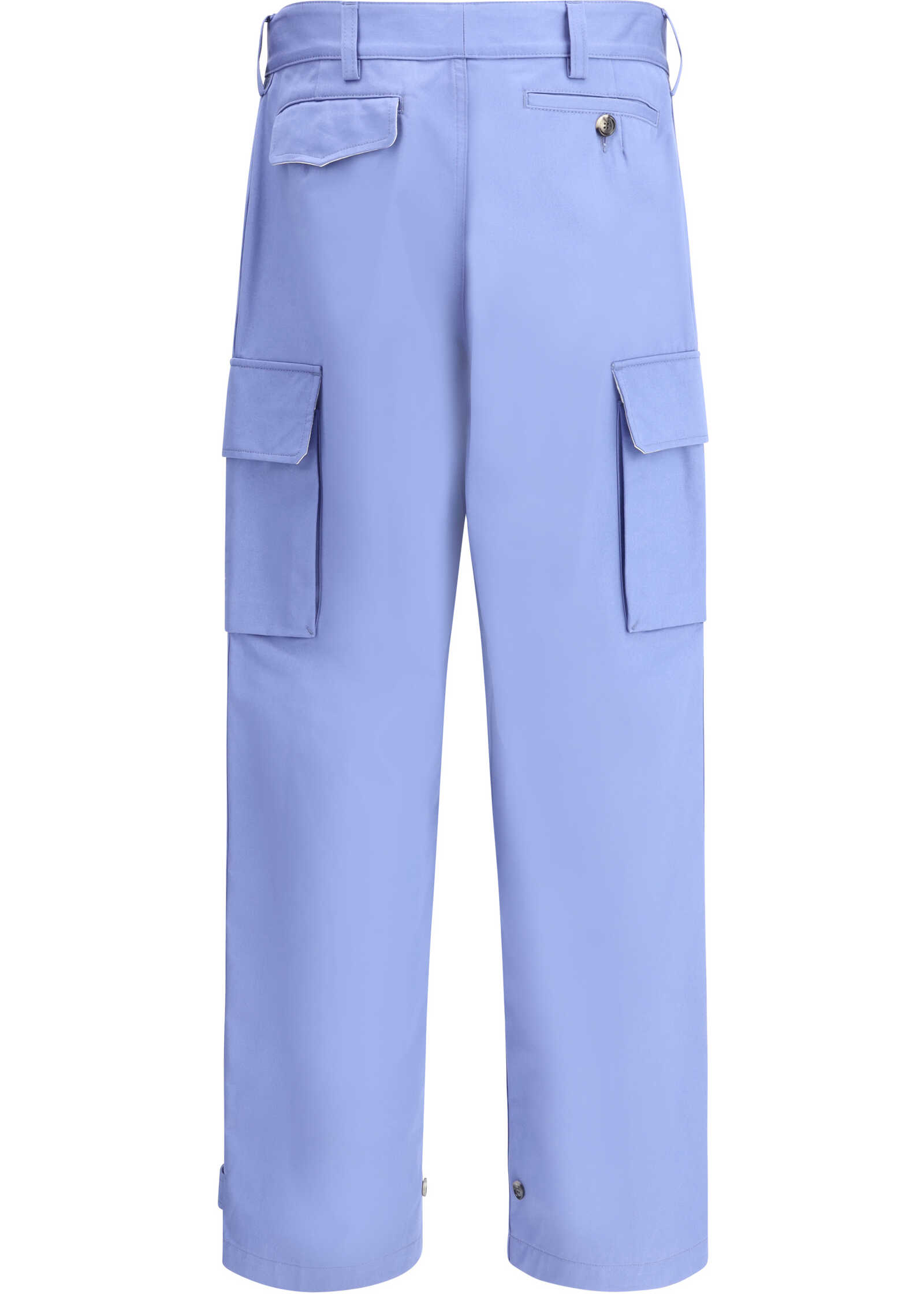 Cotton Cargo Pants by Marni, button front closure, two side slash pockets, two welt pockets with flap at back, waistband loops, two cargo pockets on side panels, adjustable button hem, monochrome pattern.