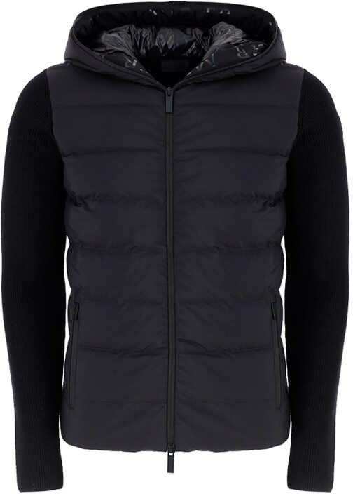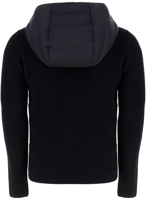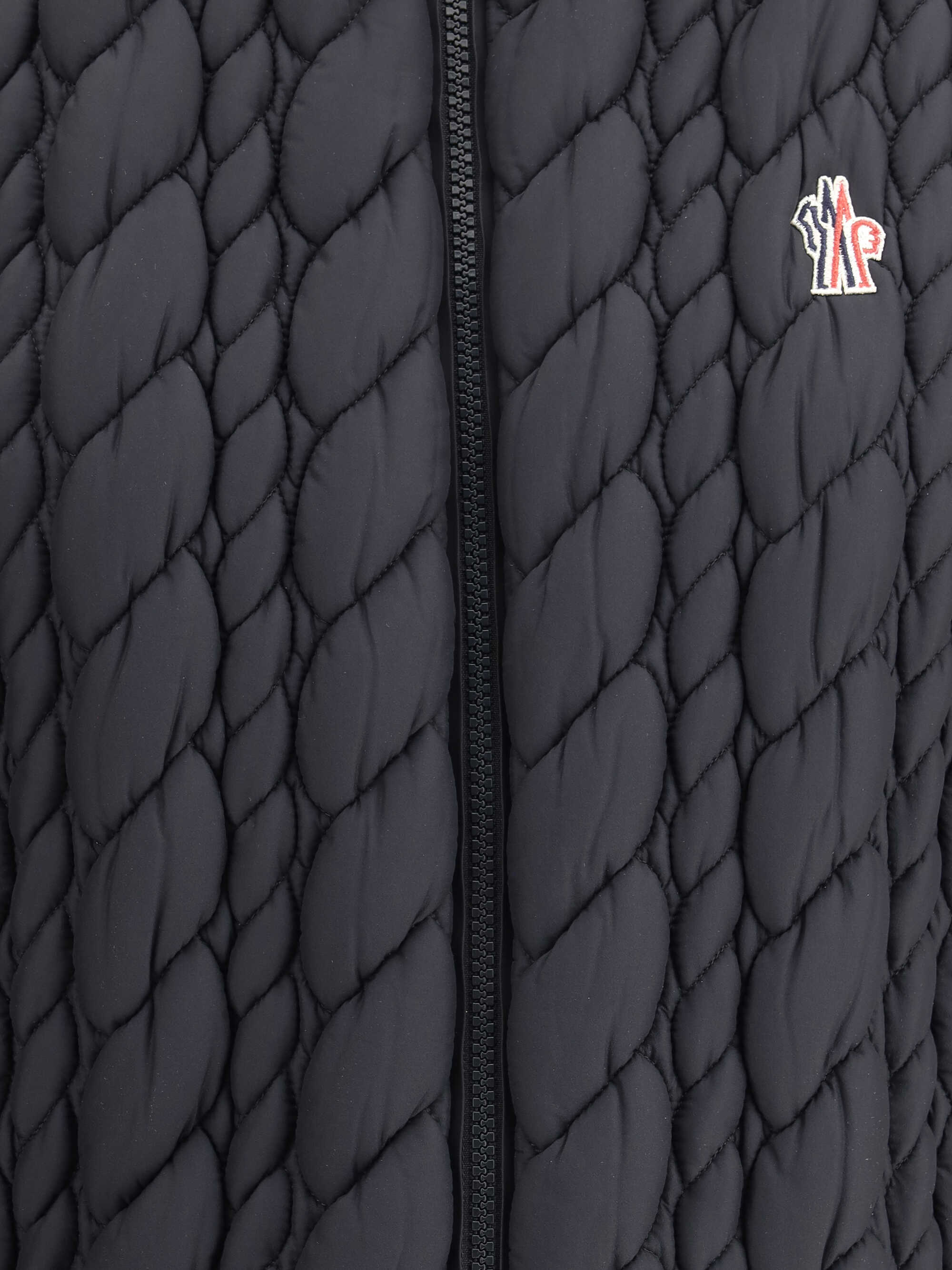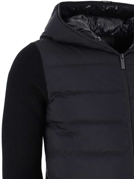 Wool Jacket by Moncler, high collar, front closure by double-slider zipper, padded and quilted front panel, two zippered front pockets, ribbed cuffs, regular fit.