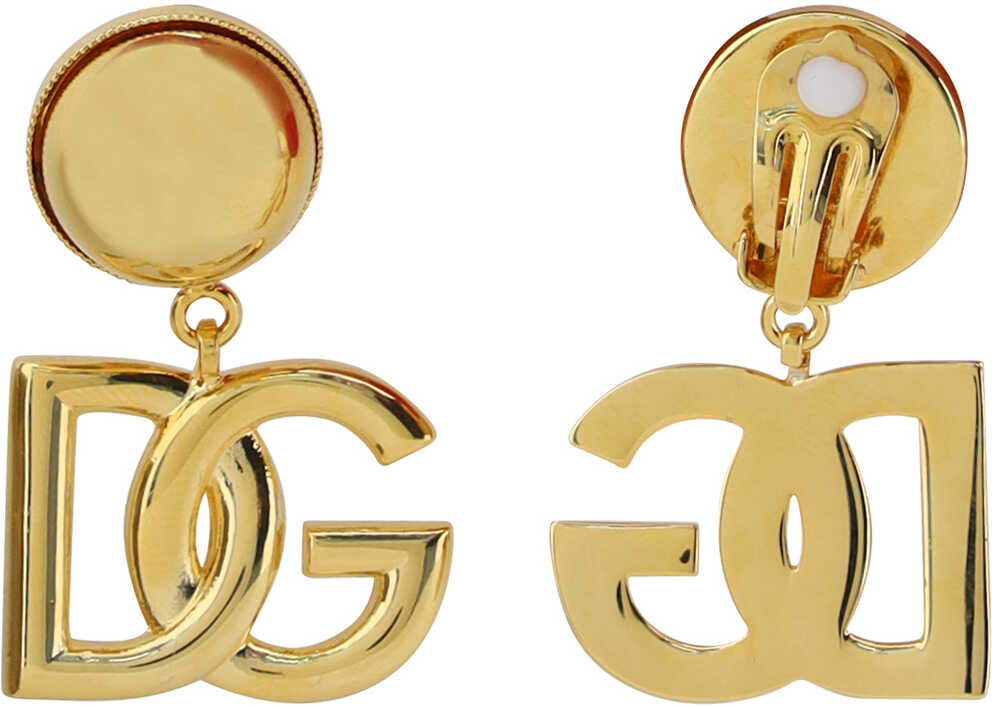 Earrings by Dolce&Gabbana, clip fastening, pendant with iconic brand D&G logo, gold finish, model can also be worn without ear holes.