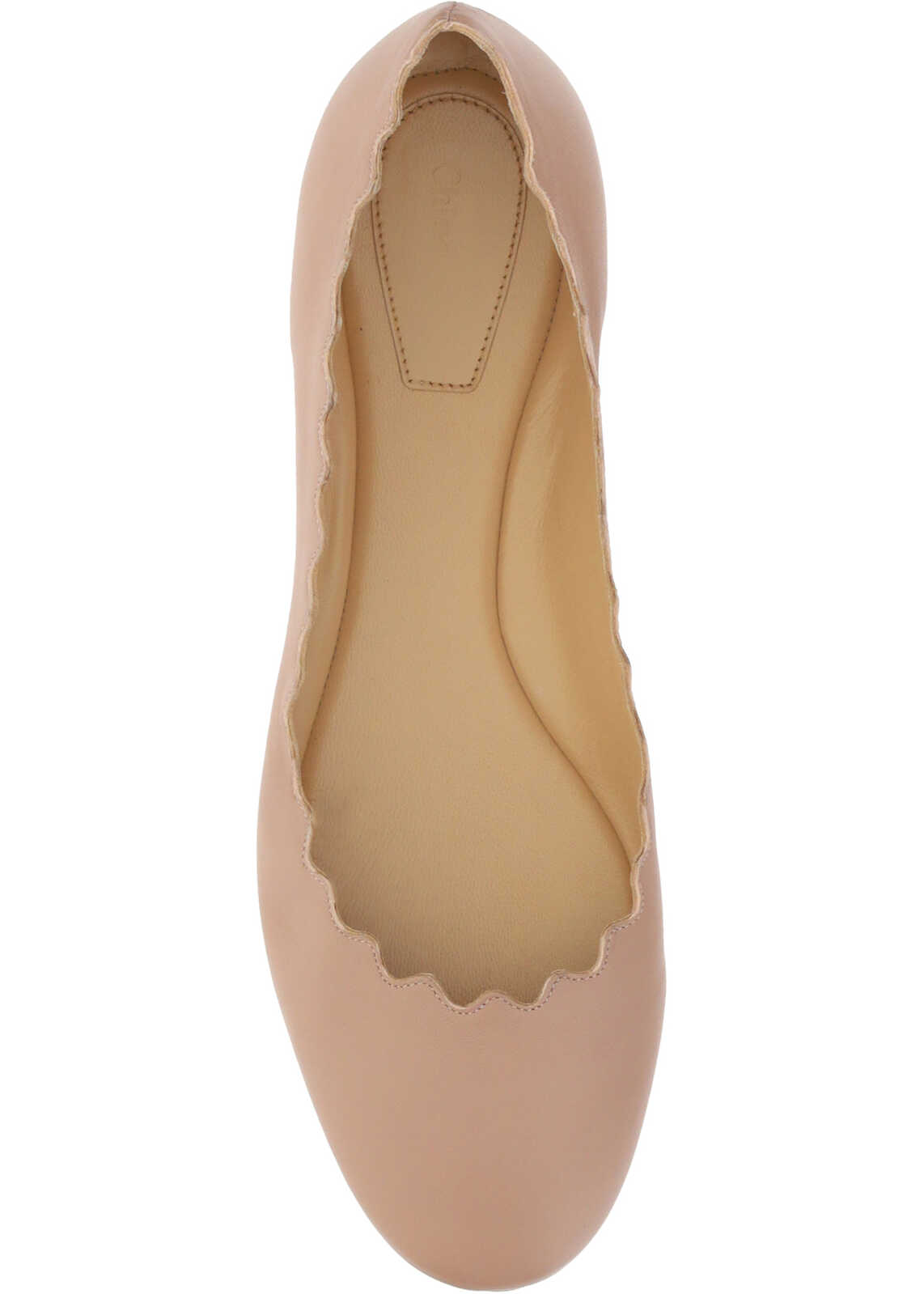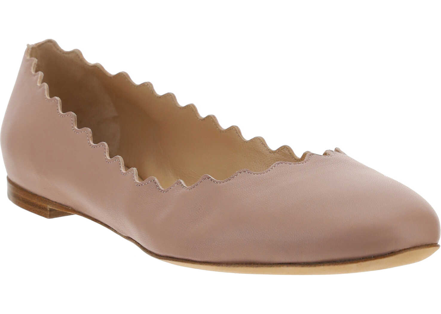 Calfskin Ballerinas by Chloé, almond toe, slight leather block heel, nappa leather design, wavy effect edging, press-on logo insole.