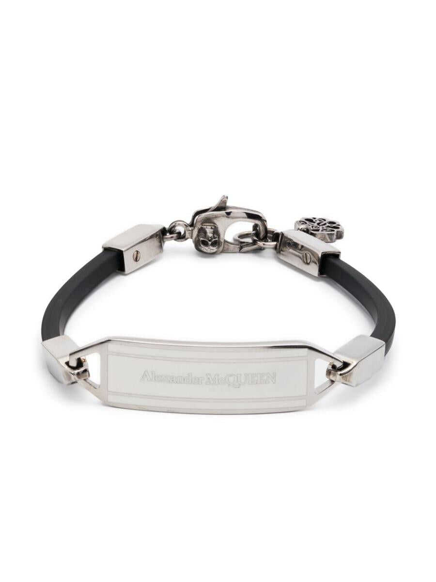 - Alexander McQueen - Men's Brass and Rubber Logo Plaque Bracelet - Black and Silver - Made of brass and rubber - Enamel logo plaque