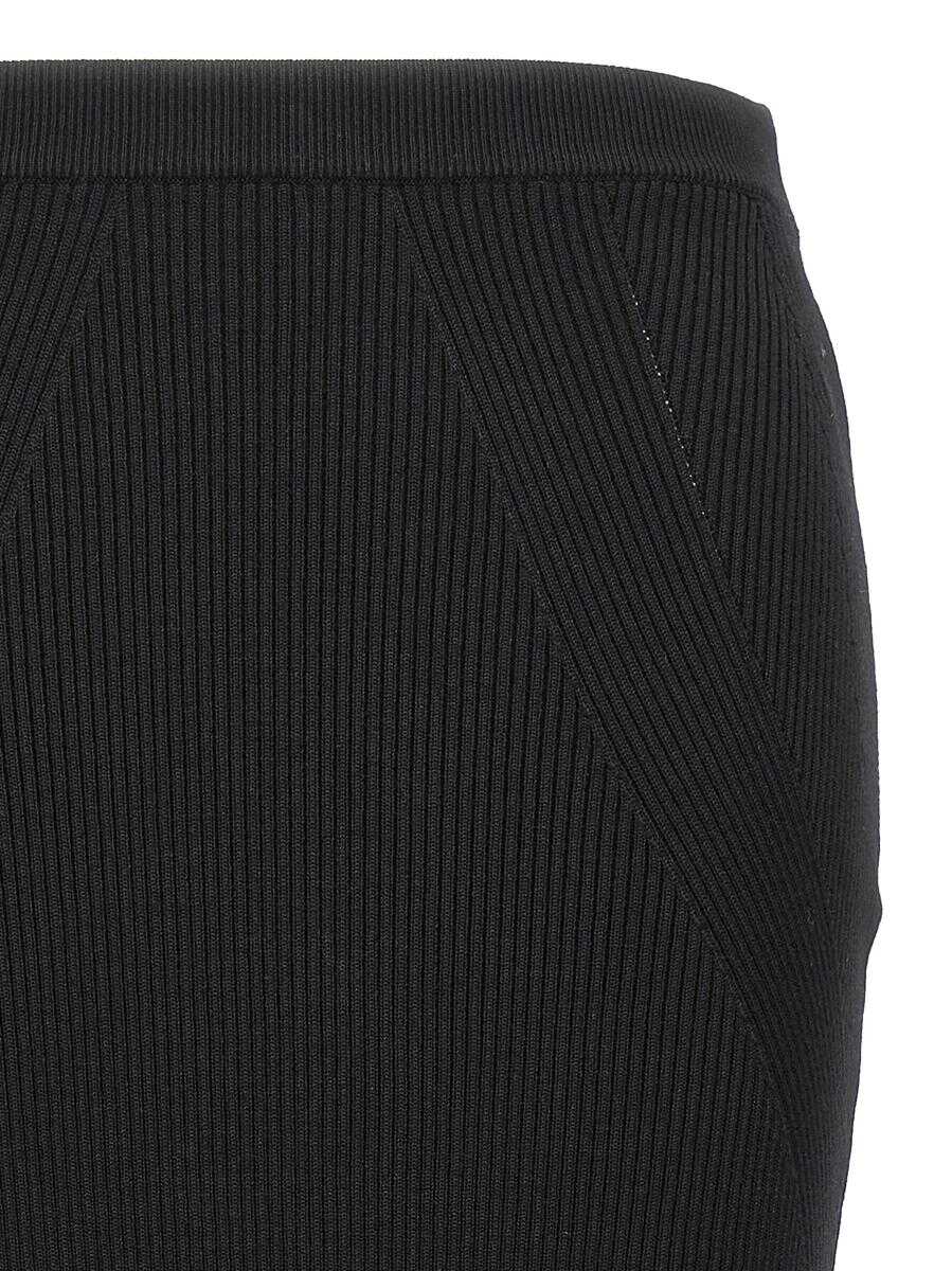 Midi skirt in ribbed wool blend with elastic waistband