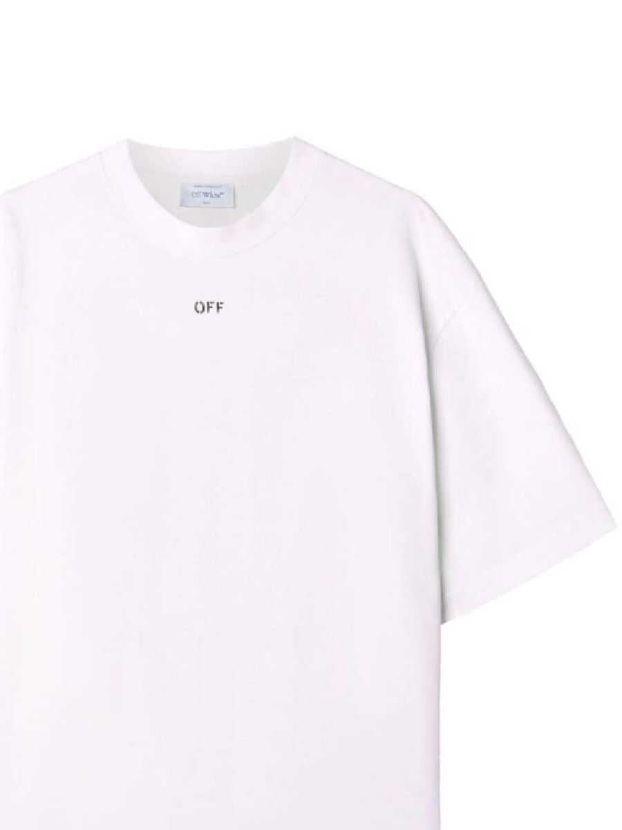 Off White's loose-fit t-shirt crafted in white cotton jersey with logo print at chest and Dragon Arrow print at back. It features crew neck, short sleeves and straight hem.