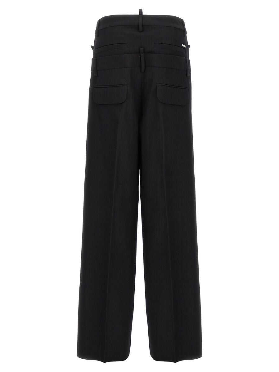 'Twin Pack' wool trousers with double waist detail, hook and button zip closure, pockets, wide leg