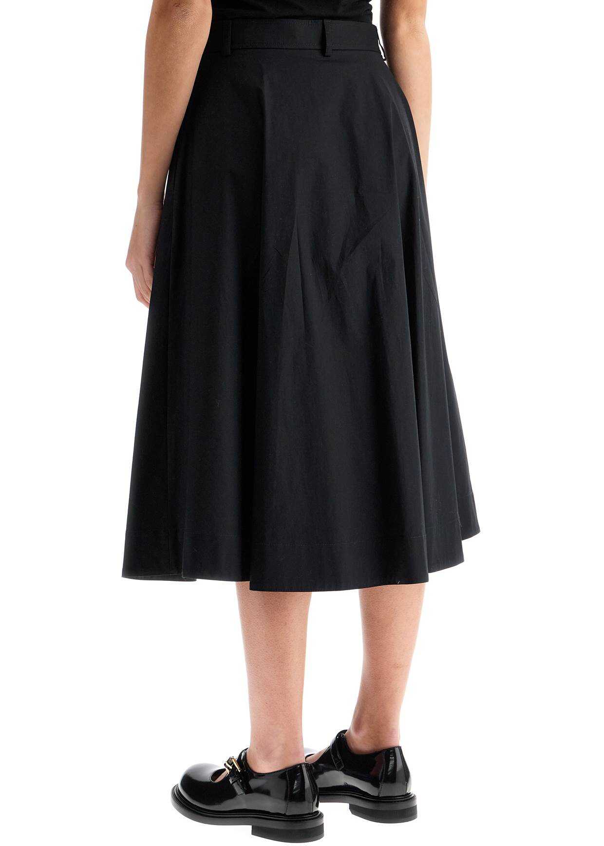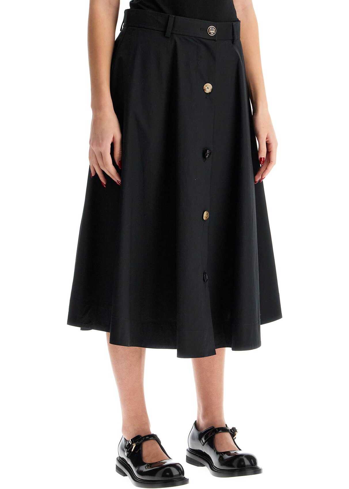 This Moschino midi skirt is made of stretch cotton poplin and features a front closure with assorted buttons. It has a flared A-line silhouette with belt loops at the waist and pockets inserted in the sides. The model is 177 cm tall and wears size IT 40.