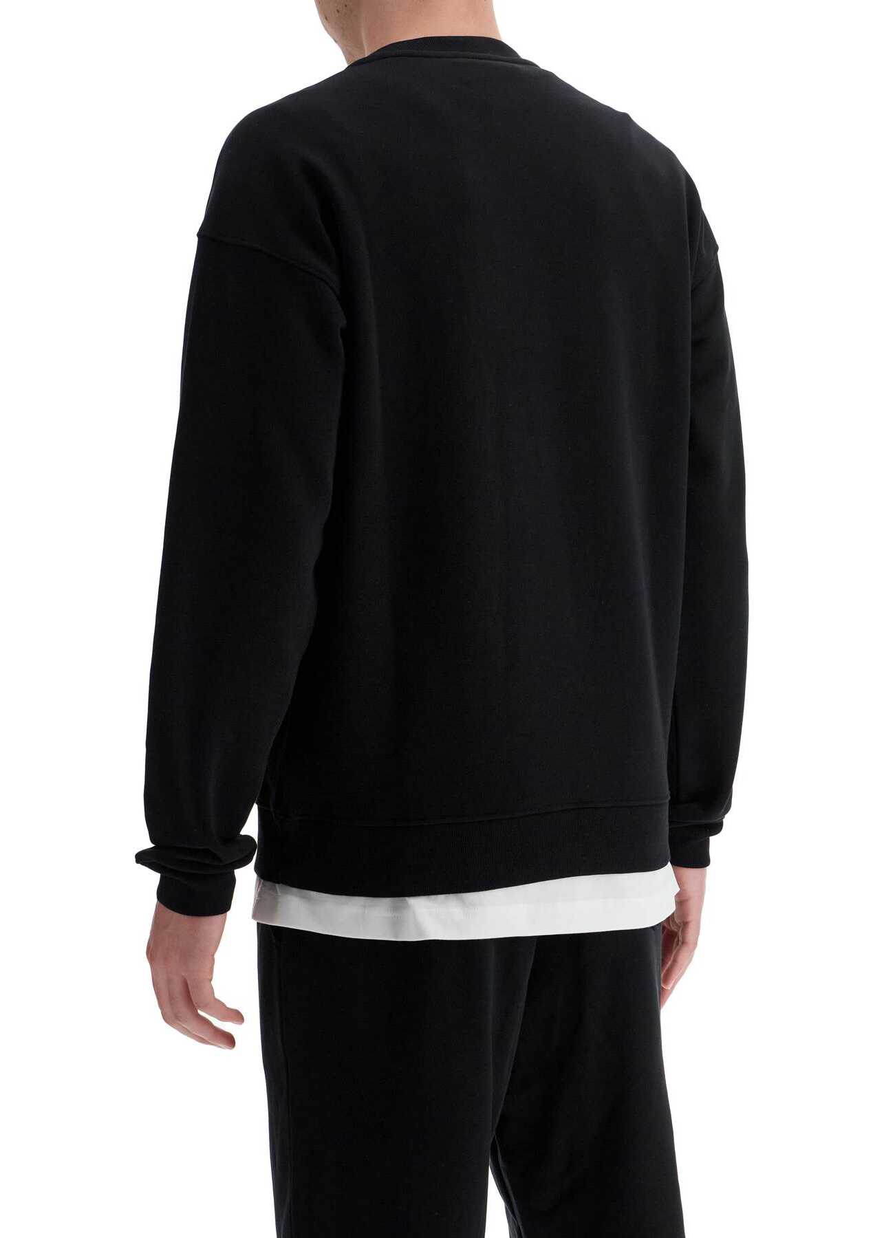 This crew neck sweatshirt is made of soft brushed cotton jersey and features a printed Moschino Teddy Bear motif on the chest. It has a regular fit with dropped shoulders and ribbed edges. The model is 182 cm tall and wears a size M.