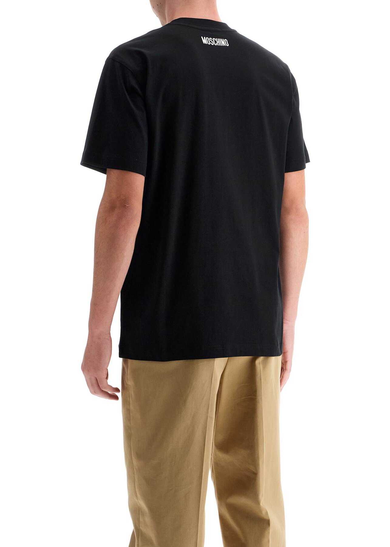 Short-sleeved jersey cotton t-shirt, embroidered with a small goose on the chest and the Moschino logo on the back. Ribbed crew neck, regular fit. The model is 182 cm tall and wears size M.