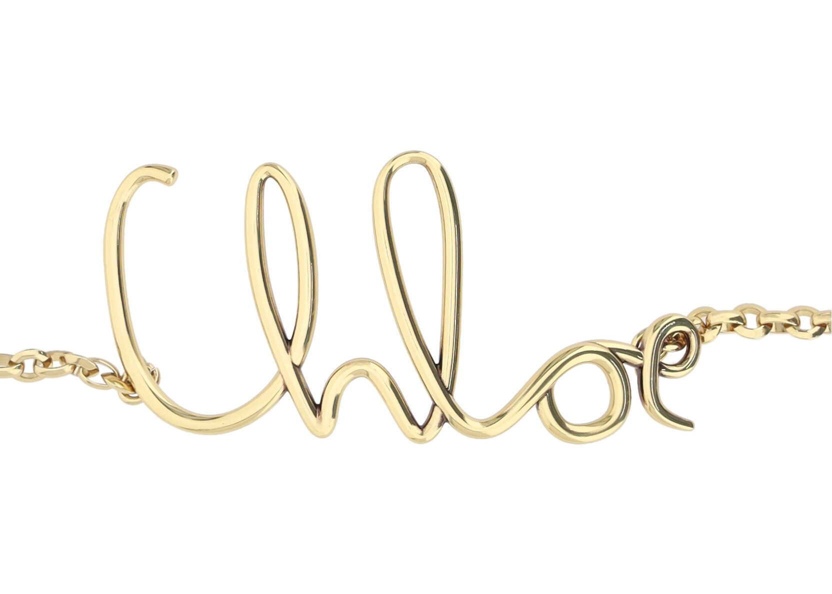 Belt by Chloé, metal chain pattern, iconic brand monogram lettering detail, hook-and-eye closure.