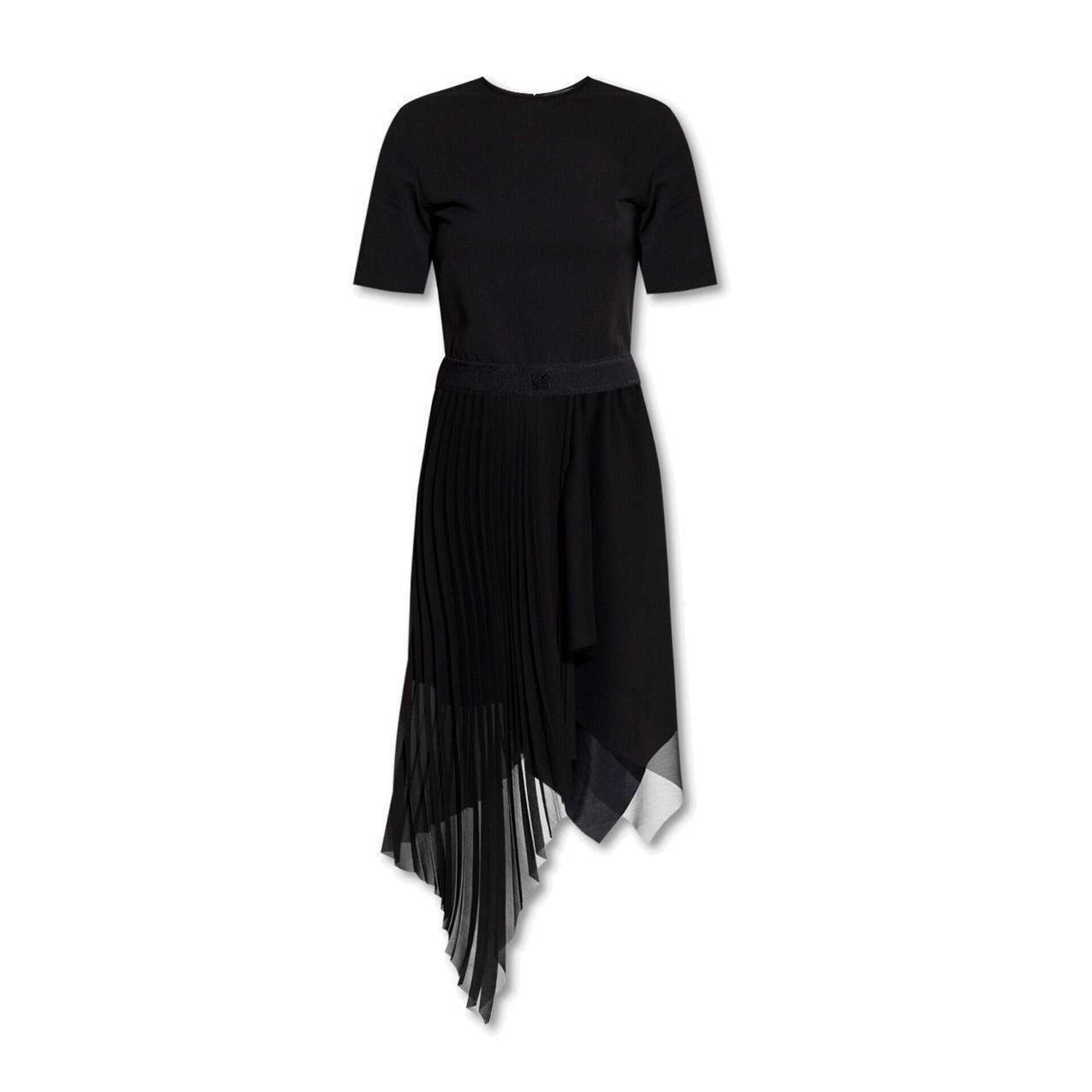 - Composition: 100% Polyester - Back zip closure - Short sleeve - Pleated dress in jersey crepe georgette - Flared skirt - Draped effect on the asymmetrical side - Elasticated belt with 4G GIVENCHY patterns - Made in Italy - Gender: WOMEN - MPN BW21J912YT_001 - Code: DRS GV 2 EV SS P00001 120