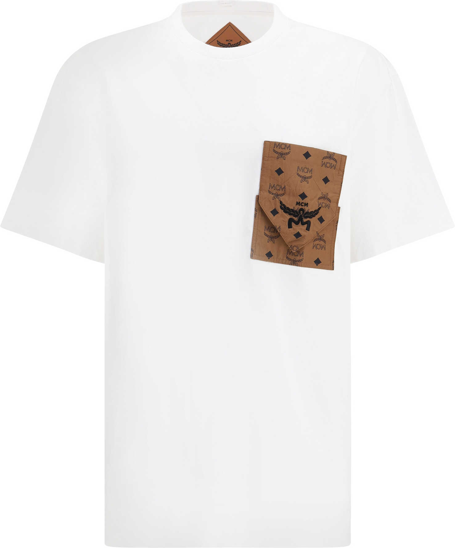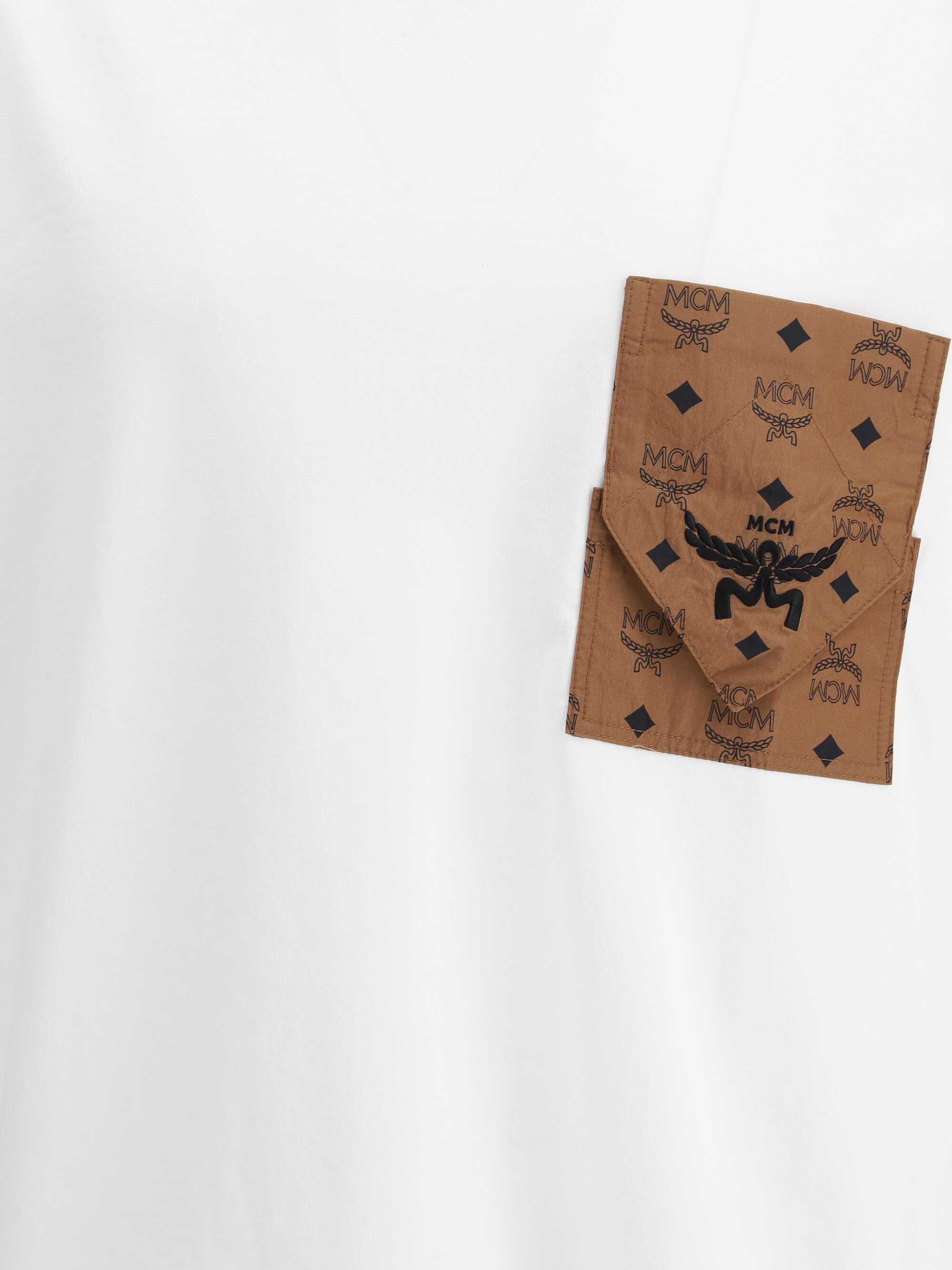 Cotton T-Shirt by MCM, ribbed crew neck, slit patch pocket with contrasting iconic brand monogram detail, monochrome pattern, regular fit.