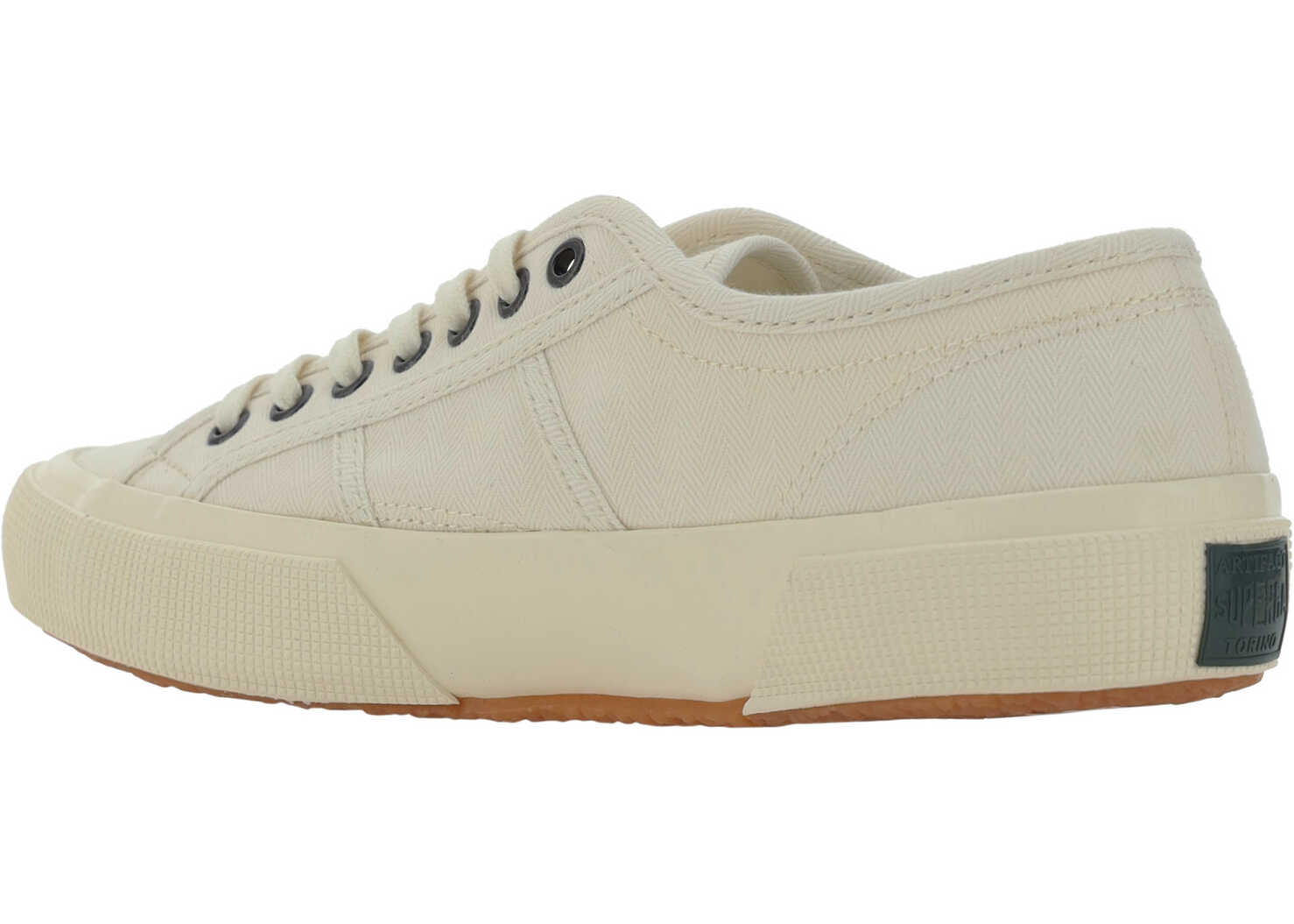 Cotton Artifact Herringbone Sneakers by Superga, Herringbone weave cotton twill upper, diamond-textured rubber bumper, engraved logo aluminum eyelets, lace-up front closure.