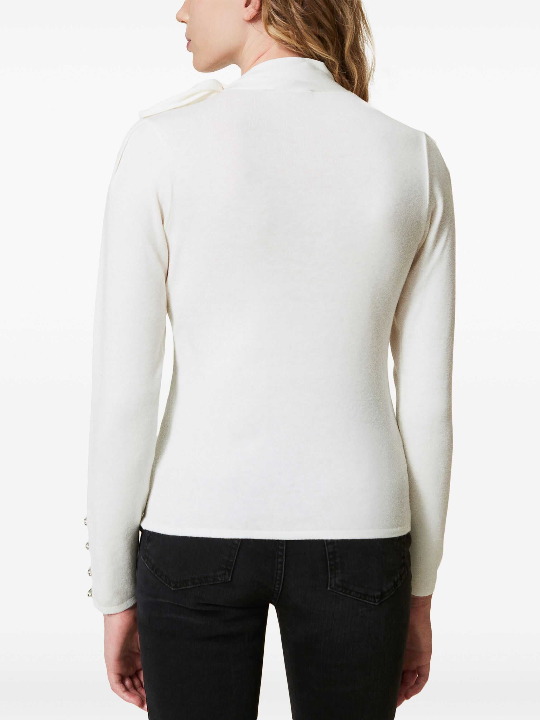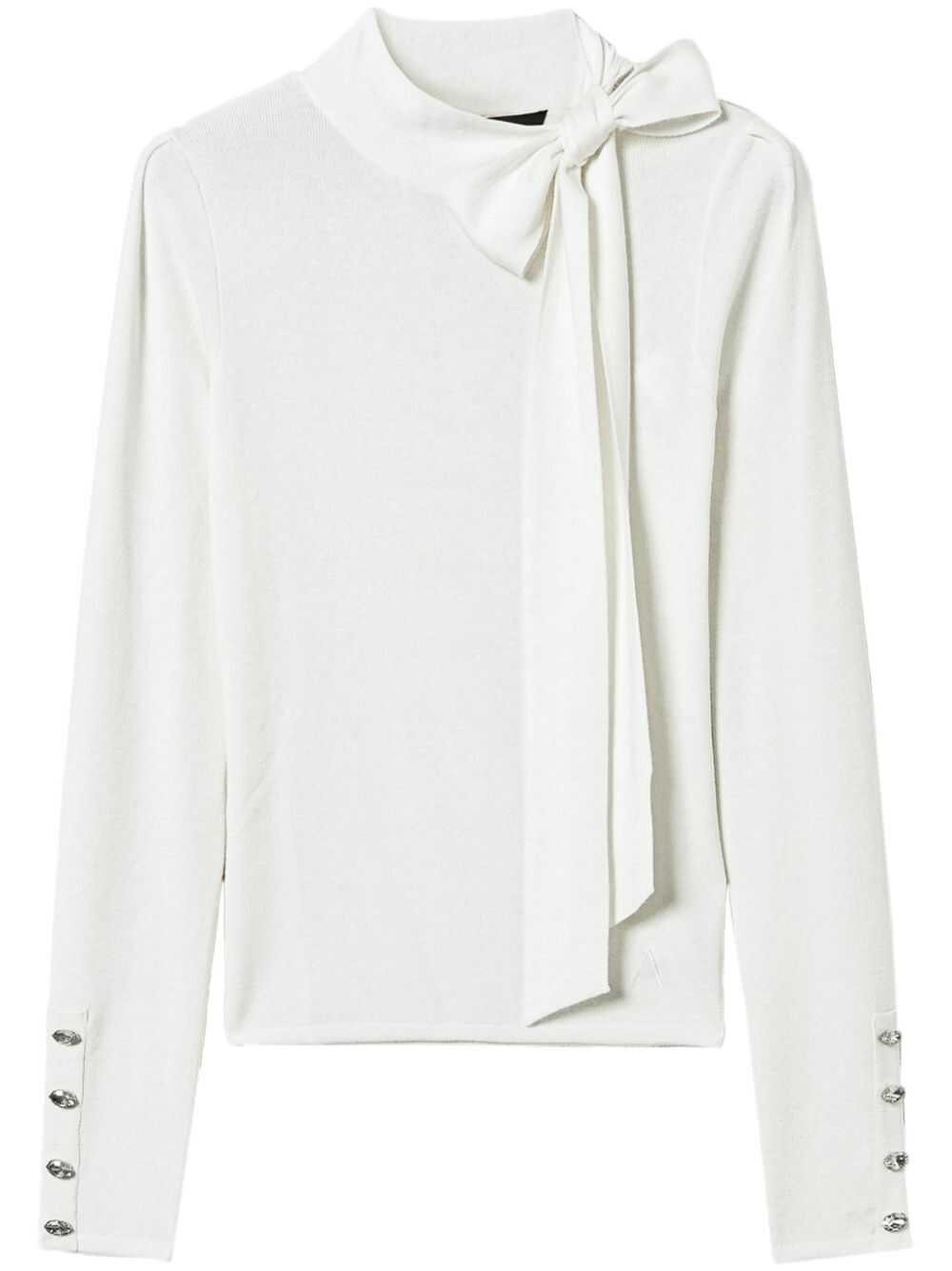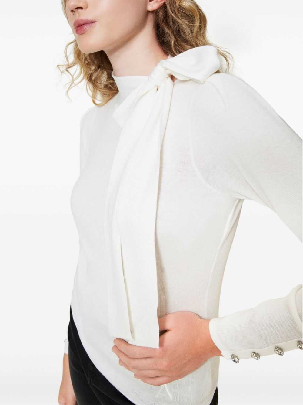 Elevate your wardrobe with the Twinset Actitude White Sweater, featuring a chic oversized bow and a beautifully crafted knitted design. Perfect for any occasion, this sweater combines elegance with comfort, making it a must-have for stylish women.