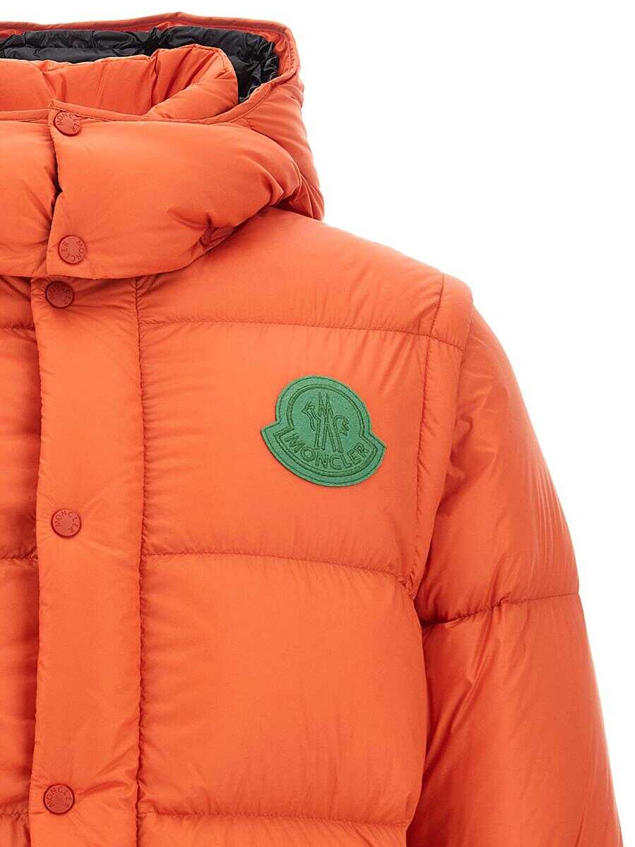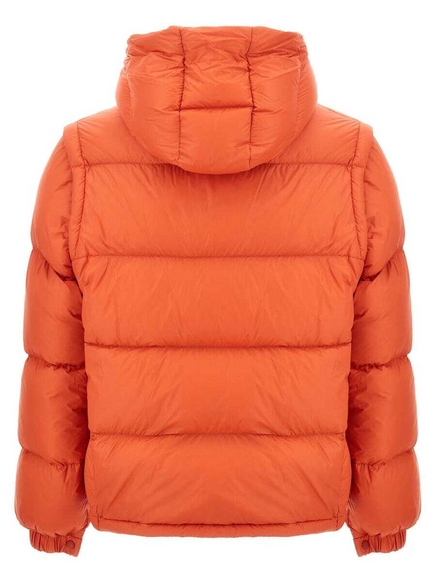 2 in 1 'Cyclone' padded nylon down jacket, zip and button closure, removable long sleeves with knitted cuffs, pockets, front logo patch