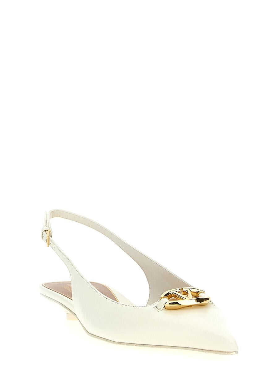 'Vlogo Moon' leather slingbacks with gold front logo, spool heel, adjustable strap