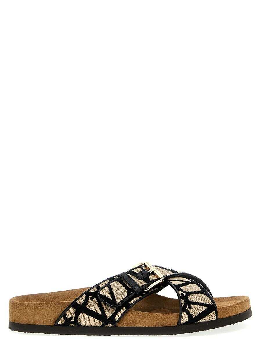 'Toile Iconographe' fabric sandals with leather details, suede insole, rubber sole