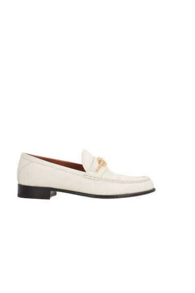 Valentino Garavani's loafers crafted in ivory smooth leather with the iconic gold-tone metal VLogo Signature detailing. Featuring a round-toe silhouette, leather lining and leather sole.