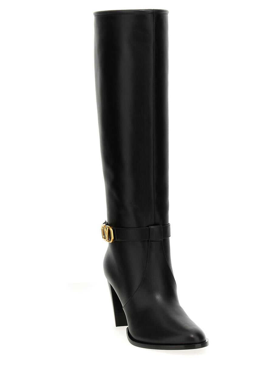 Leather boots, strap with metal 'VLogo Signature' buckle at the ankle, side zip closure, wide heel, leather sole