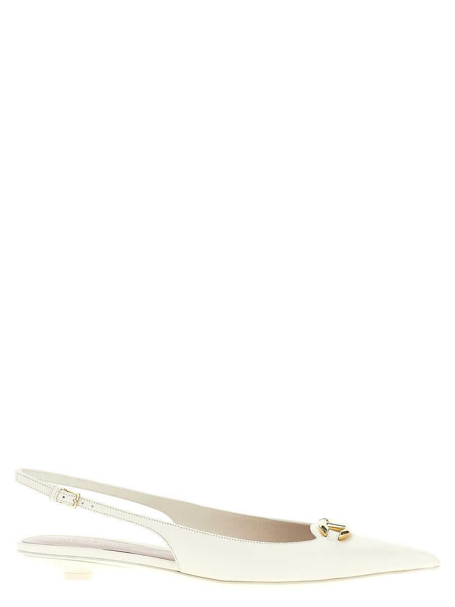 Leather slingback shoes with gold metal 'VLogo The Bold Edition' appliqué on the front, adjustable strap