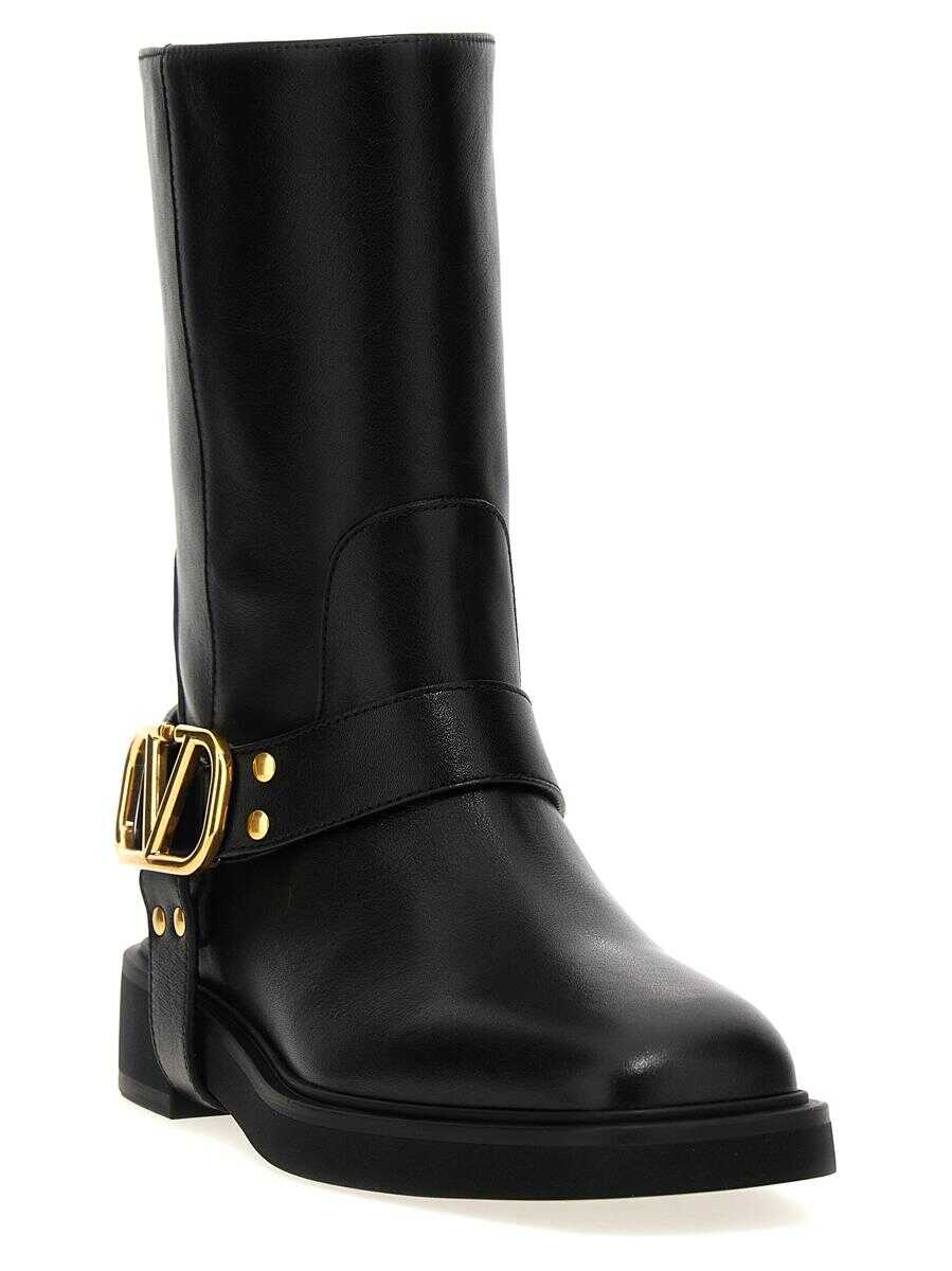 Leather ankle boots with gold metal 'VLogo Signature' detail, rubber sole