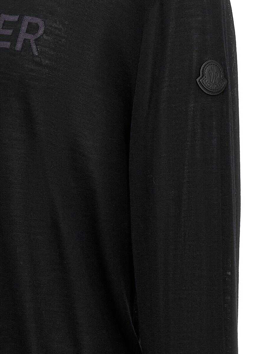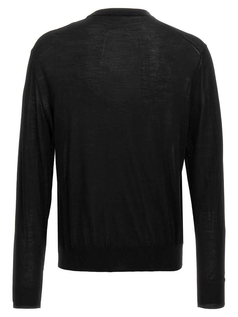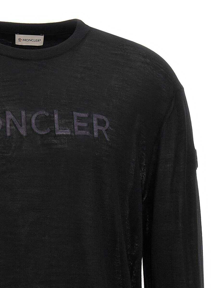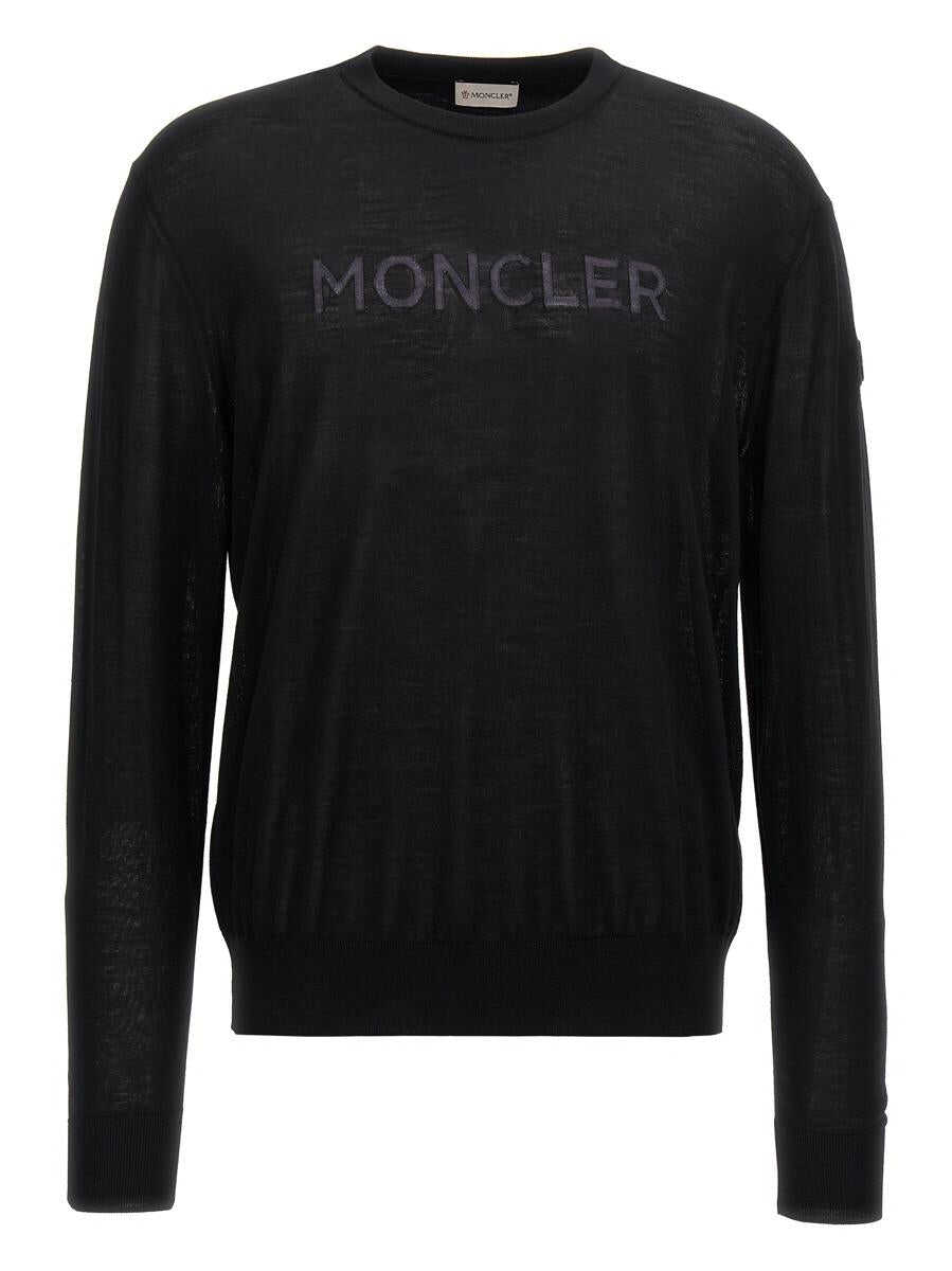 Wool sweater with front logo intarsia, crew neck, long cuffed sleeves, leather logo patch