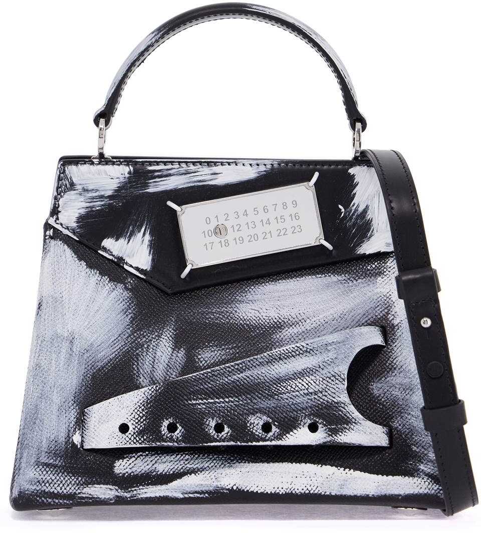 The Snatched handbag by Maison Margiela is made of burgundy leather with the iconic Bianchetto treatment and a genderless, asymmetrical design inspired by origami. It features the Maison's rectangular closure, decorated with a mirrored numeric logo that opens and closes on the number 11. The interior is lined with suede and has an open pocket, while the base is protected by protective feet and the adjustable and removable leather shoulder strap adds versatility. The front also has a perforated strap