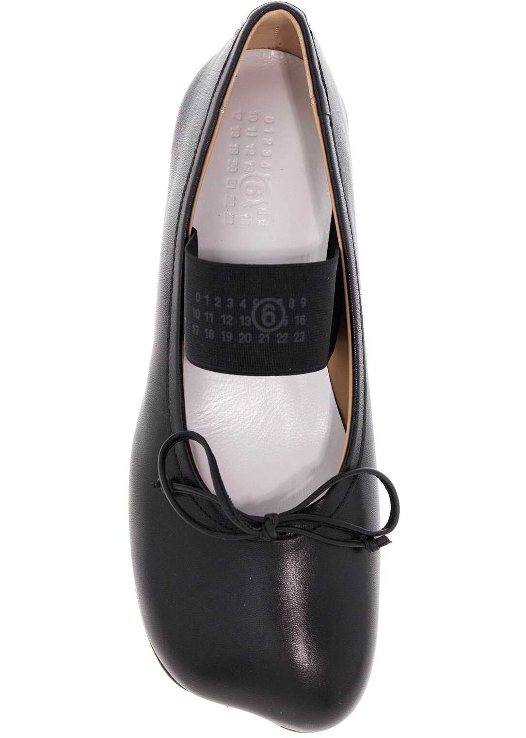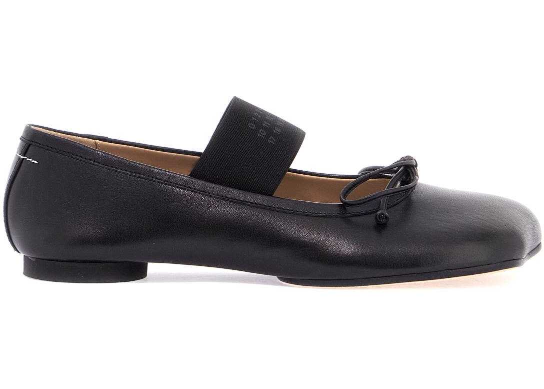 These MM6 Maison Margiela ballerina flats are made of smooth leather and feature an anatomical toe, a covered decorative bow, and an elastic band with numerical logo. The contrasting leather insole, iconic white stitching on the back, and leather sole add to their unique design.