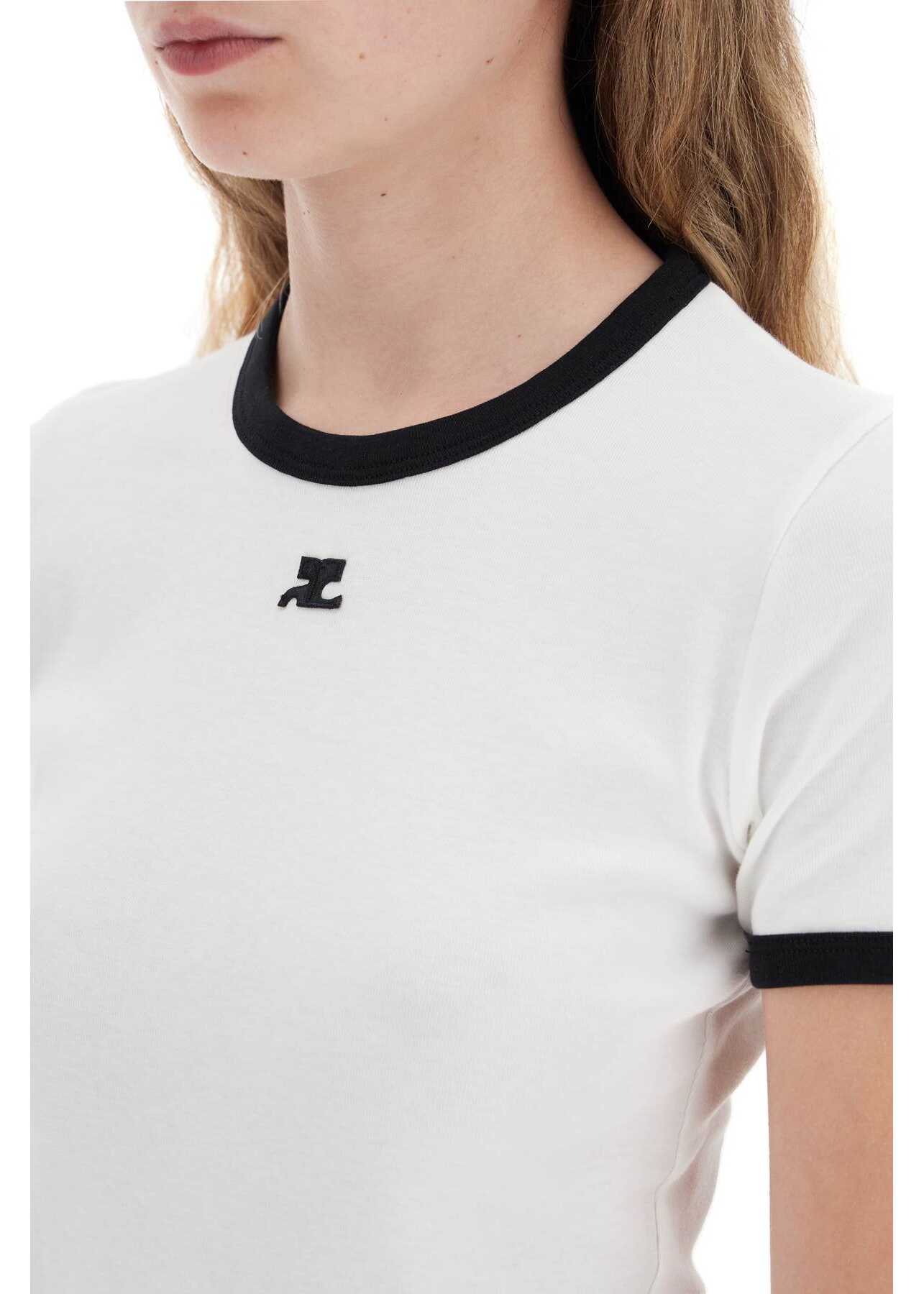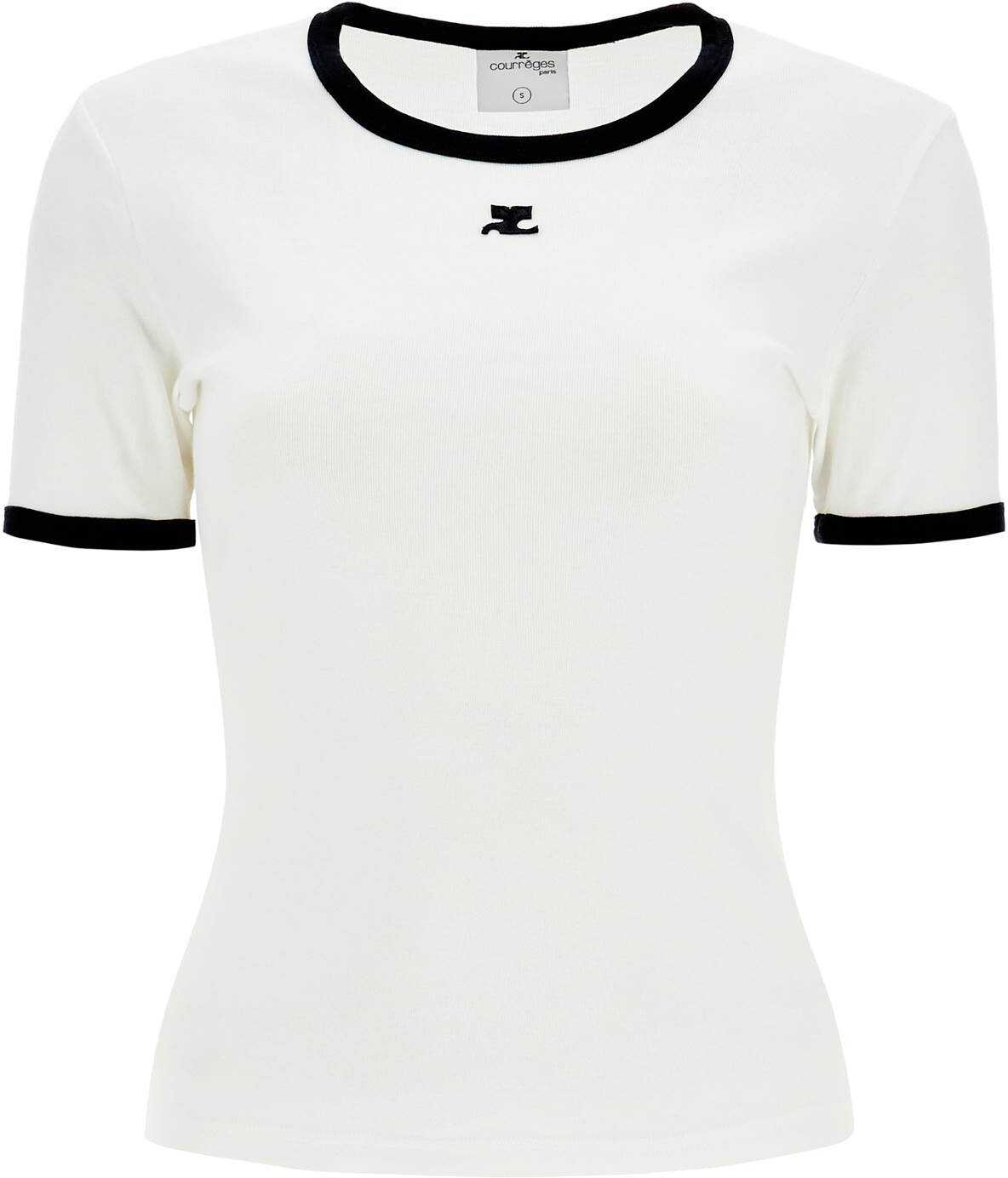Courrèges crew-neck T-shirt in pure cotton jersey with an AC logo patch embroidered at chest and contrast trims. Slim fit. The model is 177 cm tall and wears size S.