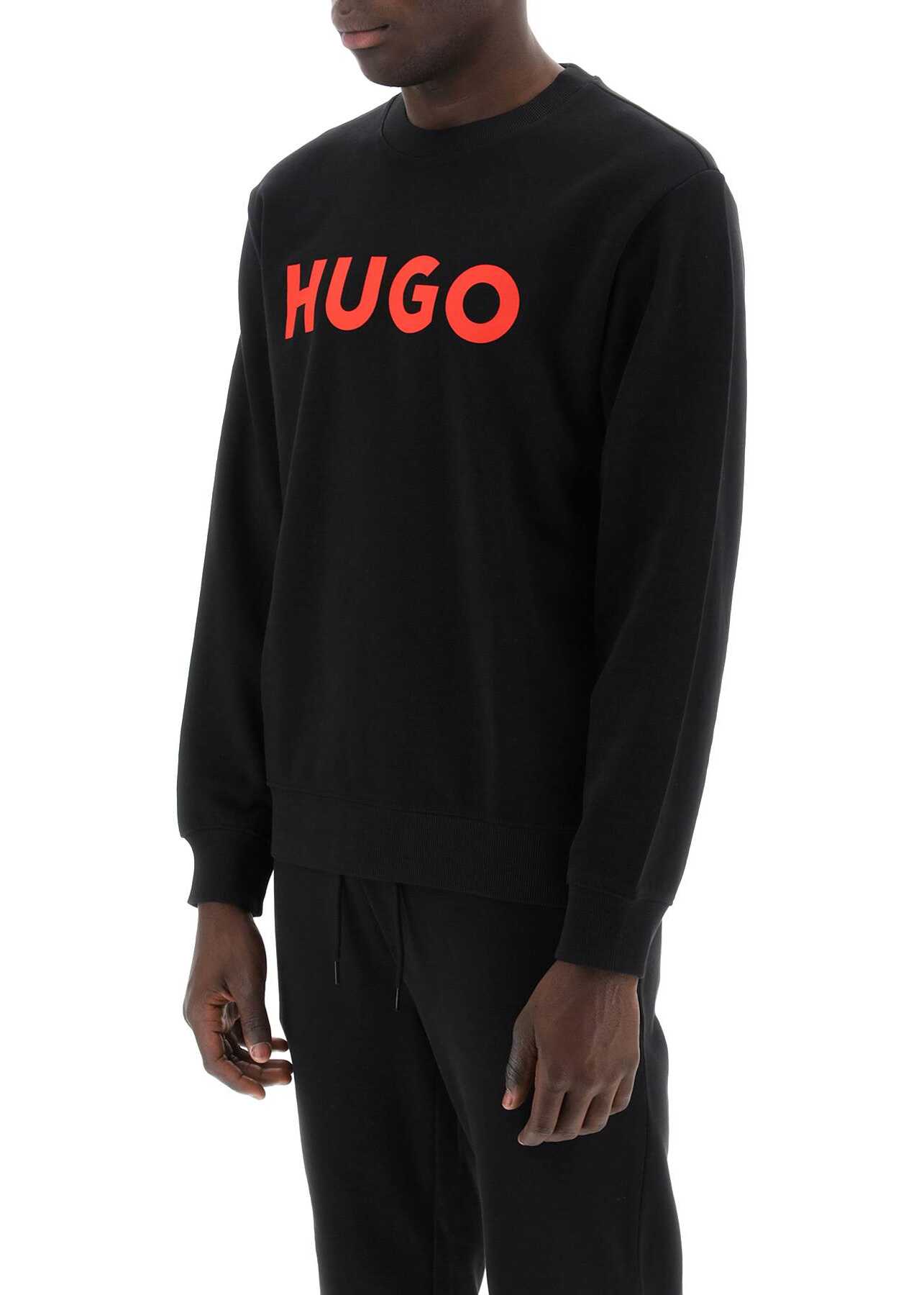 Made from loopback cotton fleece, this mid-weight crewneck sweatshirt boasts a macro Hugo logo printed across the chest. It comes in a regular fit with ribbed trims. The model is 187 cm tall and wears a size L.