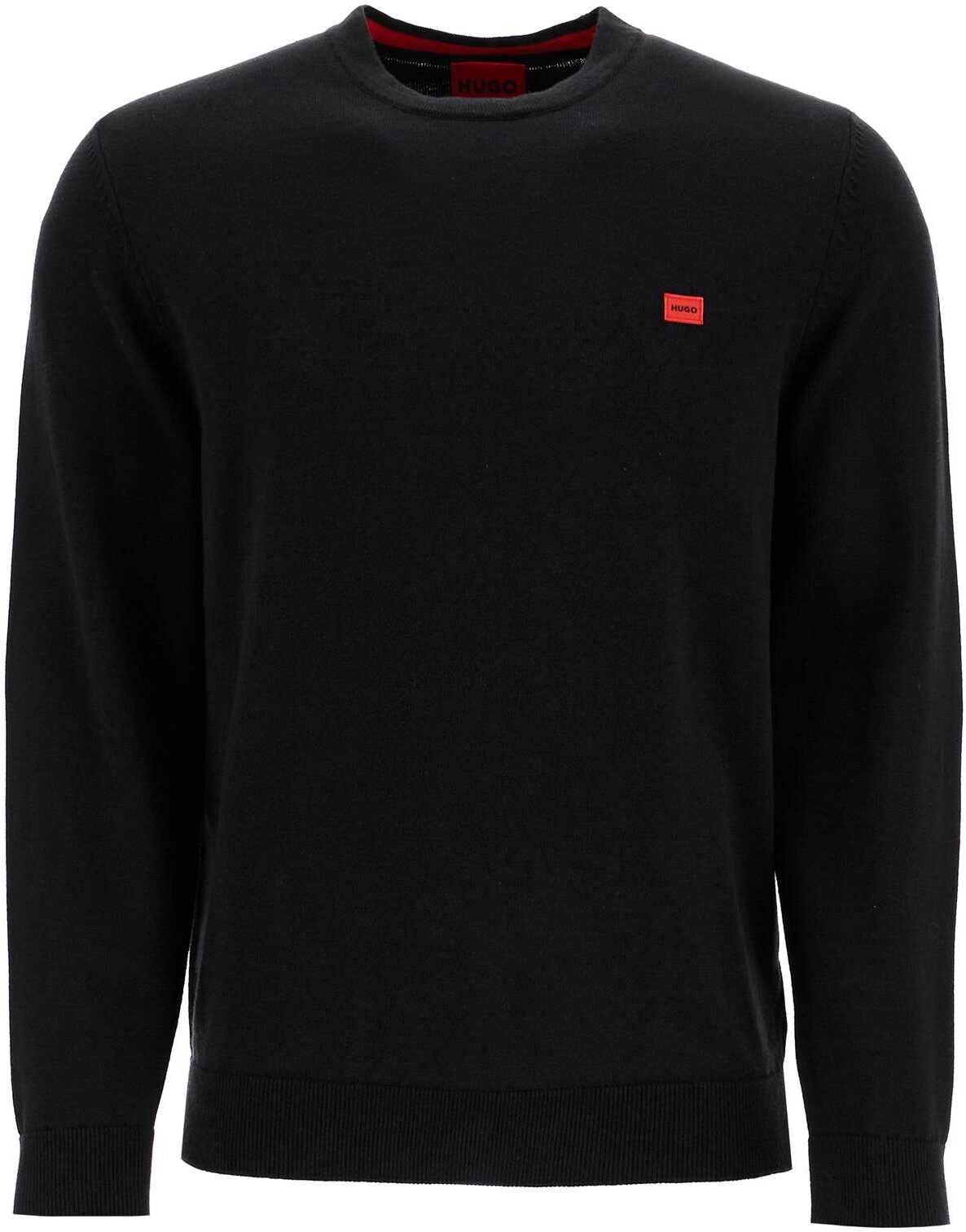 Knitted from pure cotton, this Hugo crew neck sweater features a classic design with ribbed trims and a regular fit. A small red logo label is stitched at the chest. Our model is 182 cm tall and wears a size L.