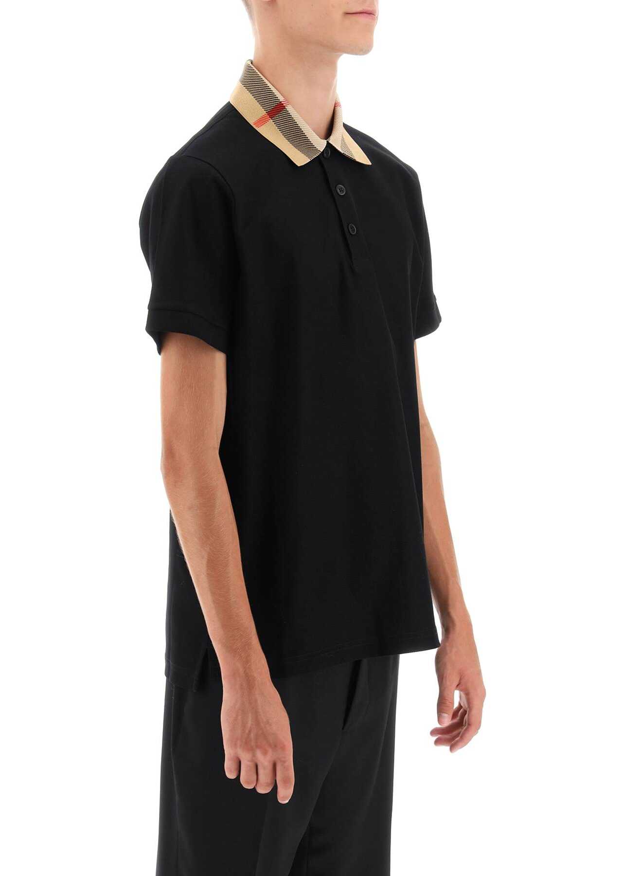 Classically styled with short sleeves and a three-button placket, this polo shirt spotlights a jacquard Burberry Check collar. It is cut from cotton piqué to a regular fit with ribbed cuffs and side-hem vents. The model is 187 cm tall and wears a size L.