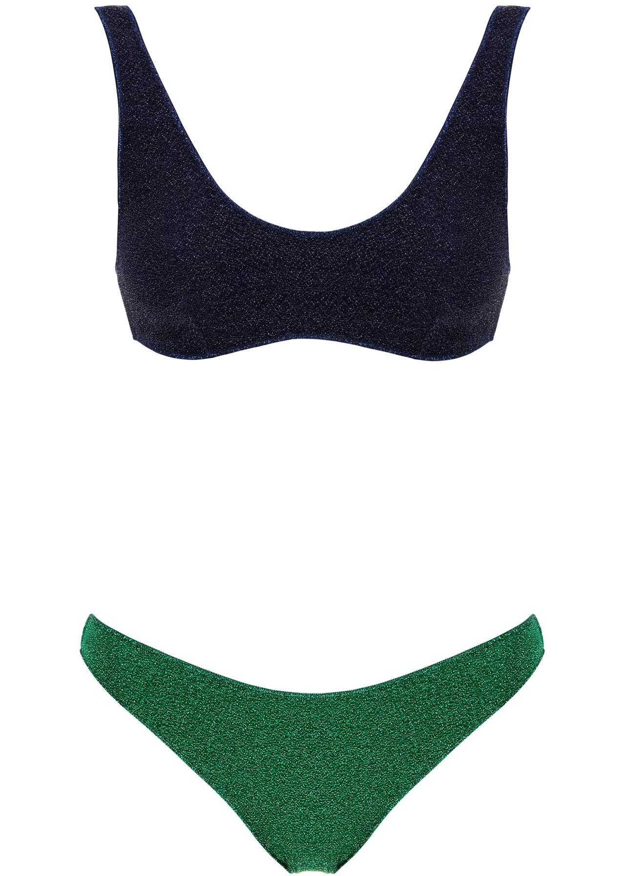 This Osé ree lycra lurex bikini set is composed of a top with fixed straps and low-waisted briefs. The model is 177 cm tall and wears size S.