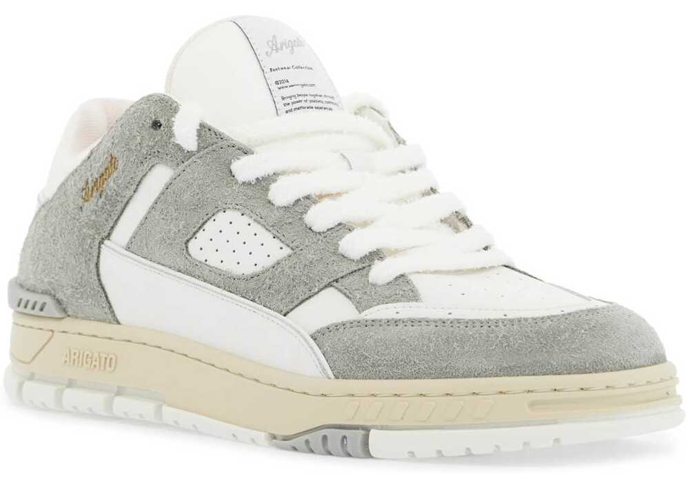 Inspired by vintage basketball models, Axel Arigato's Area Lo sneakers feature a two-tone layered construction made of smooth and suede leather with a recycled polyester tongue and spoiler. The toe and sides are perforated, while the laces are made of sponge material. The side features a laminated lettering logo, and there is also a logo label on the tongue. The interior is lined with fabric and has a removable insole, while the sole is made of molded rubber.