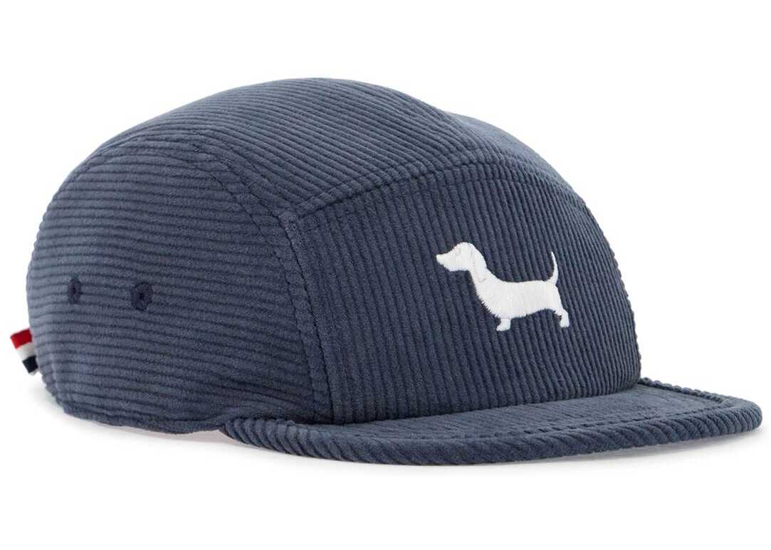This Thom Browne baseball cap is made of ribbed velvet with the iconic Hector embroidered in contrast. It features embroidered ventilation eyelets, a lined interior, and an adjustable back strap. The item shown in the photo corresponds to size M.