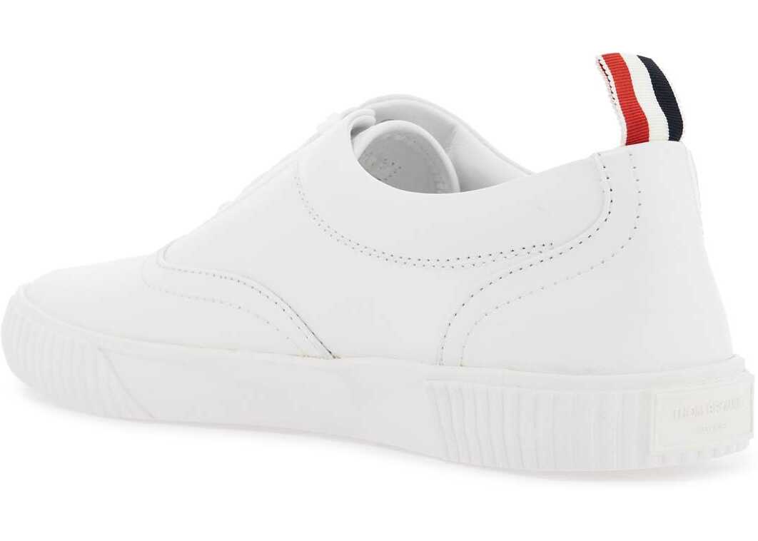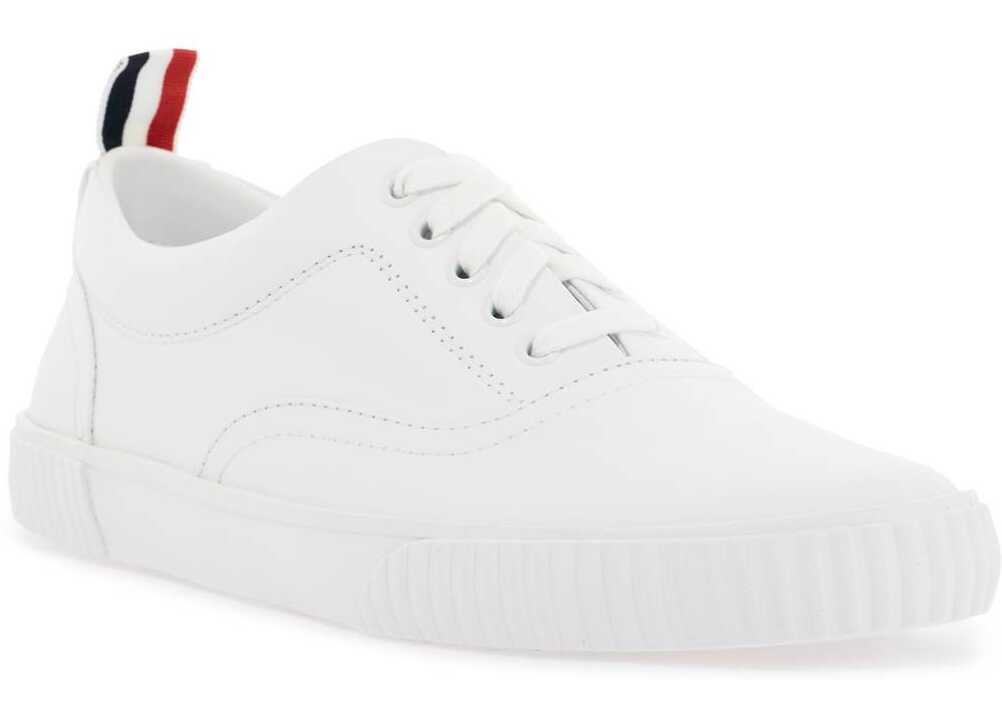 The Thom Browne Heritage sneakers are made entirely of leather with an unlined interior and removable insole. They feature a rubber sole and the iconic tricolor grosgrain tongue.