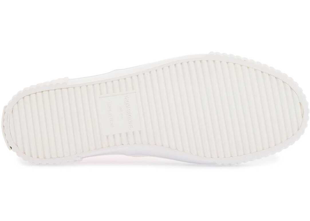The Funmix Heritage sneakers by Thom Browne are made of color-blocked cotton canvas with flat laces, an unlined interior with a removable insole, rubber sole, and iconic tricolor grosgrain tongue.
