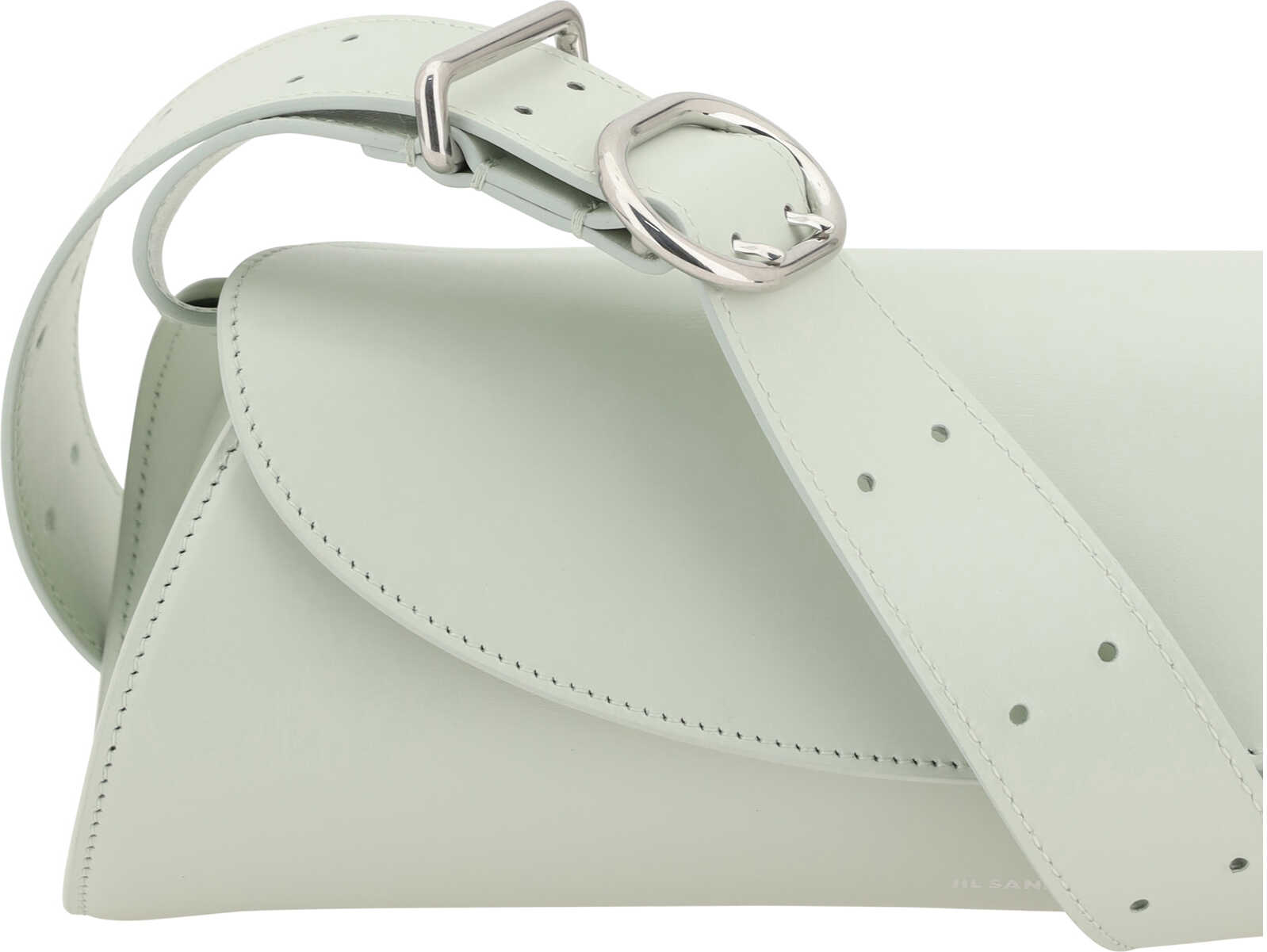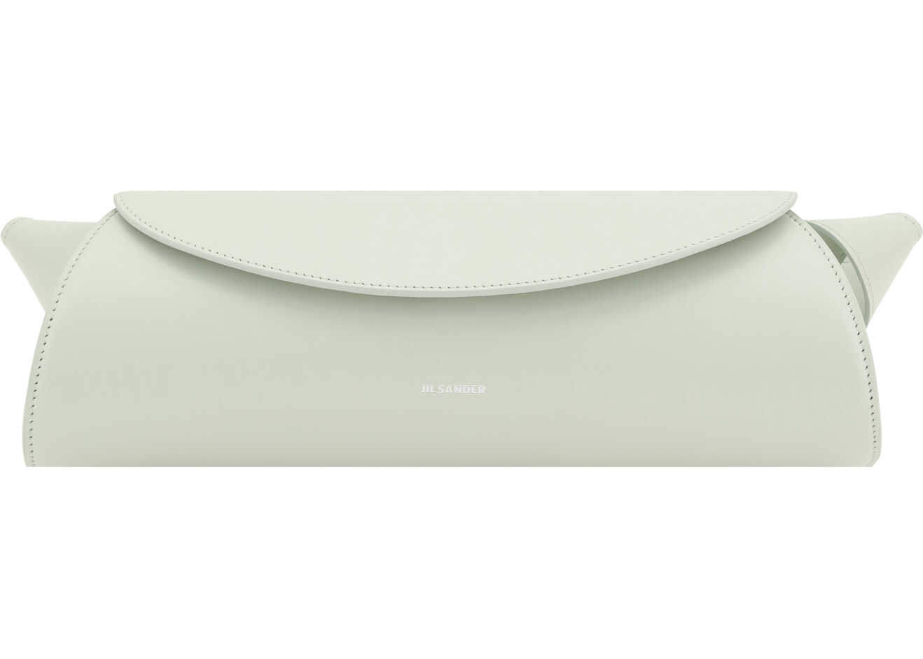 Leather Cannolo Shoulder Bag by Jil Sander, single adjustable shoulder strap with gold plated buckle, signature brand press stud on front, top closure with magnetic button, tubular shape, welt pocket inside.