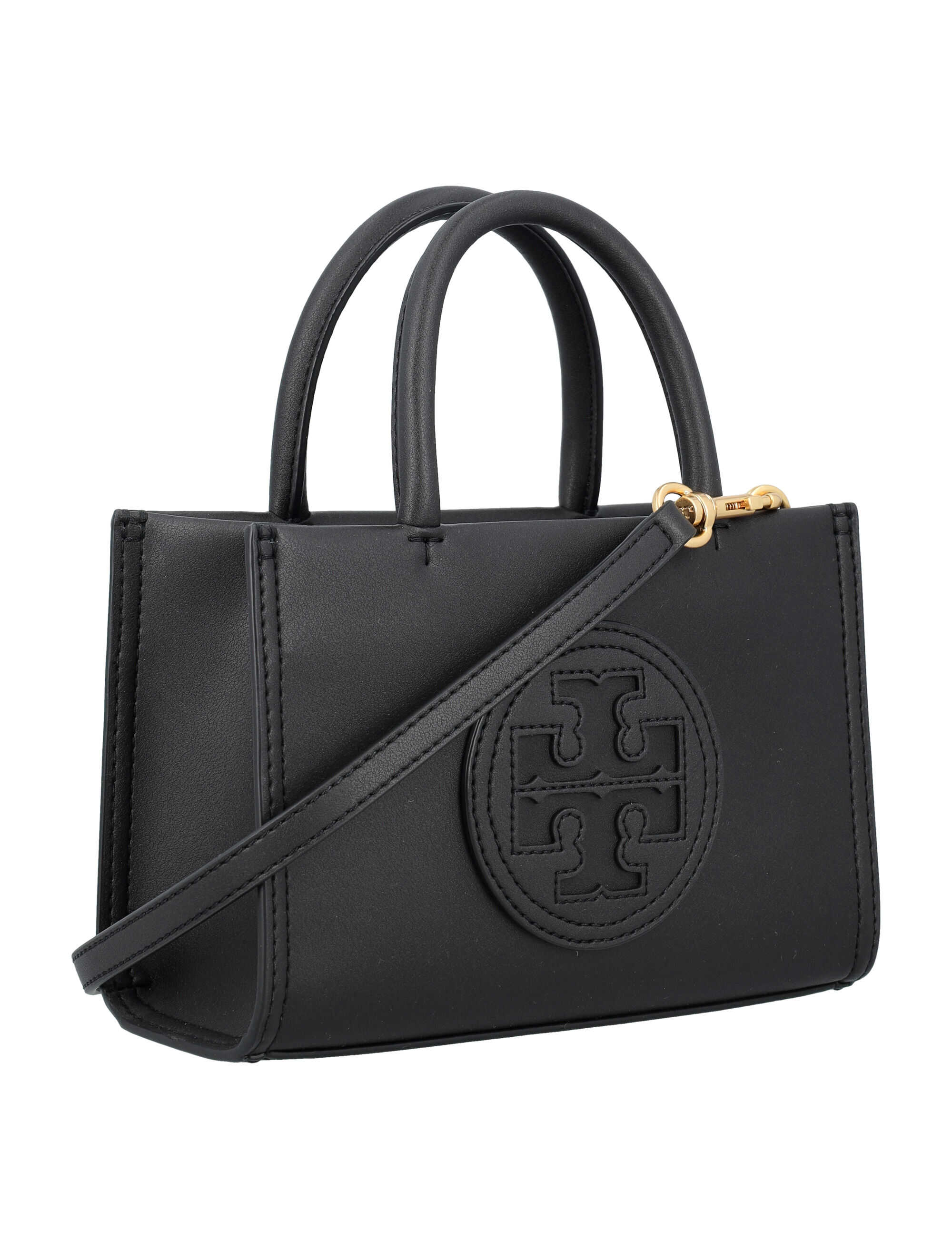 The Eco Ella Mini Tote bag by TORY BURCH is the perfect addition to your wardrobe. Made with soft black leather-effect fabric and embossed with a tone-on-tone Double T logo on the front, this bag features top double handles, an adjustable and detachable shoulder strap, magnetic tab closure, and one main interior compartment with an additional card slot. Its dimensions are 12x18.5x7cm and it is perfect for everyday use. Get yours now!