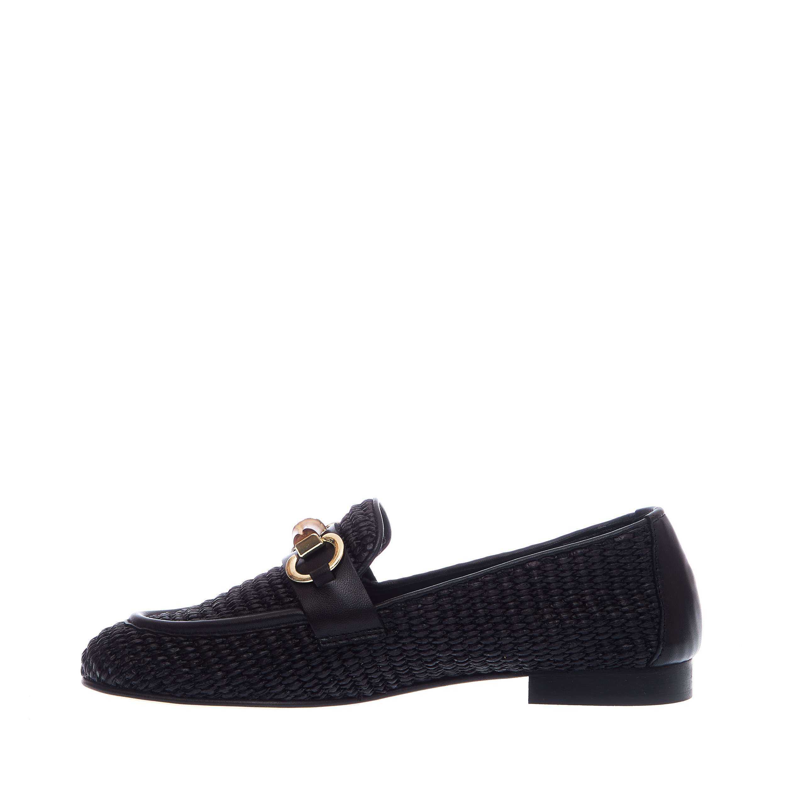 Step into style with our Black Woven Raffia Moccasin from POESIE VENEZIANE. Crafted with genuine leather, these shoes are perfect for a casual day out. The black color is versatile and will match any outfit. The intricately woven raffia adds a unique touch to the classic moccasin design. Get ready to turn heads with these stylish shoes! Length: 240 characters
