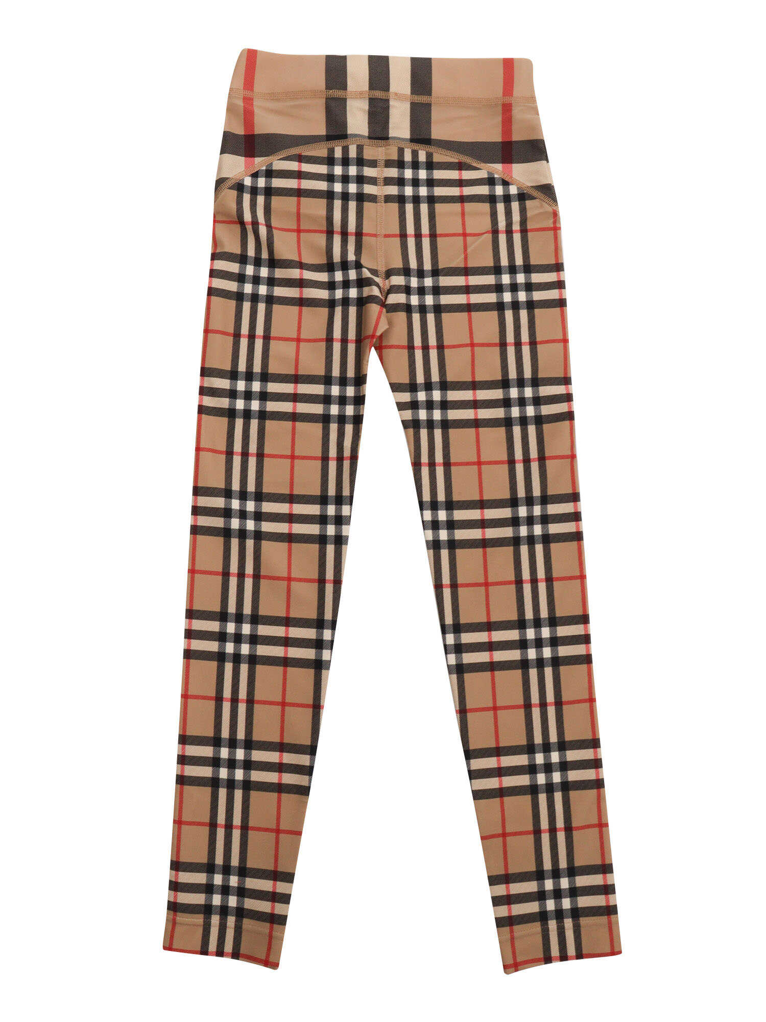 Burberry check print trousers for girls in stretch polyamide, slim fit.