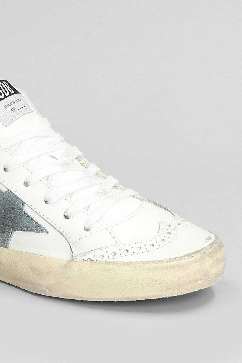 Mid Star Sneakers in white leather, laces, logo on tab, round toe, point details, suede star on side, laminated leather details, logo on heel, pull tab on backside, rubber outsole, vintage effect, 100% leather, Made in Italy