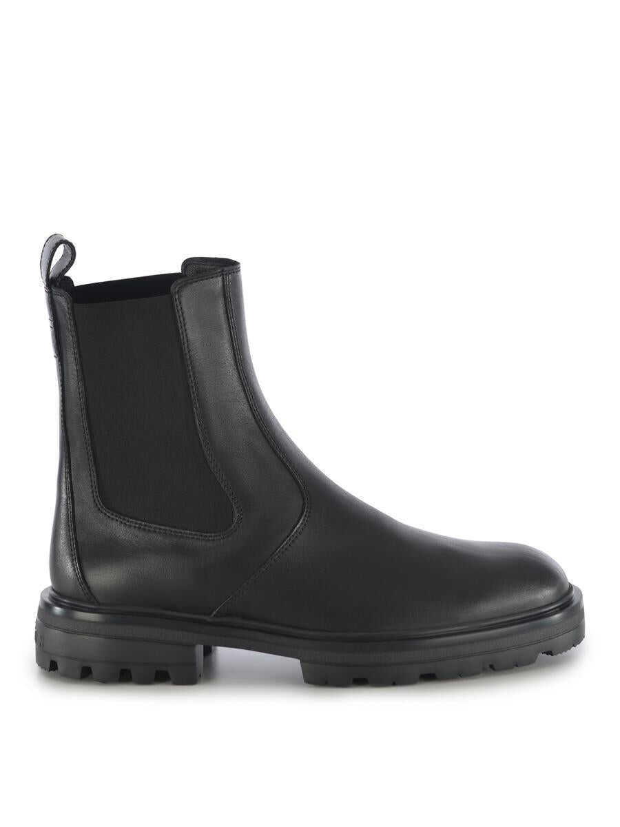 Chelesea shoes Hogan "H673" made of Black leather. Elastic side inserts. Round toe. Pull tab on the back. "Hogan" writing engraved on the back. EVA rubber sole. Insole 5cm Total height 5cm